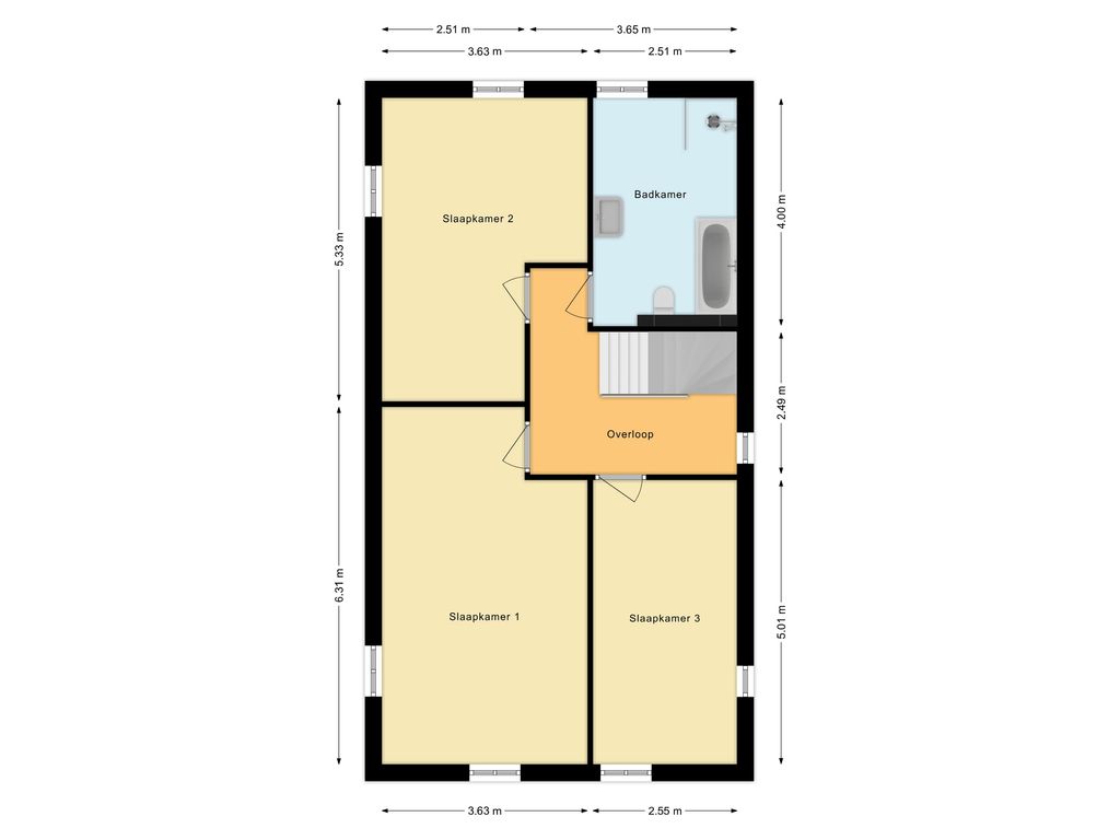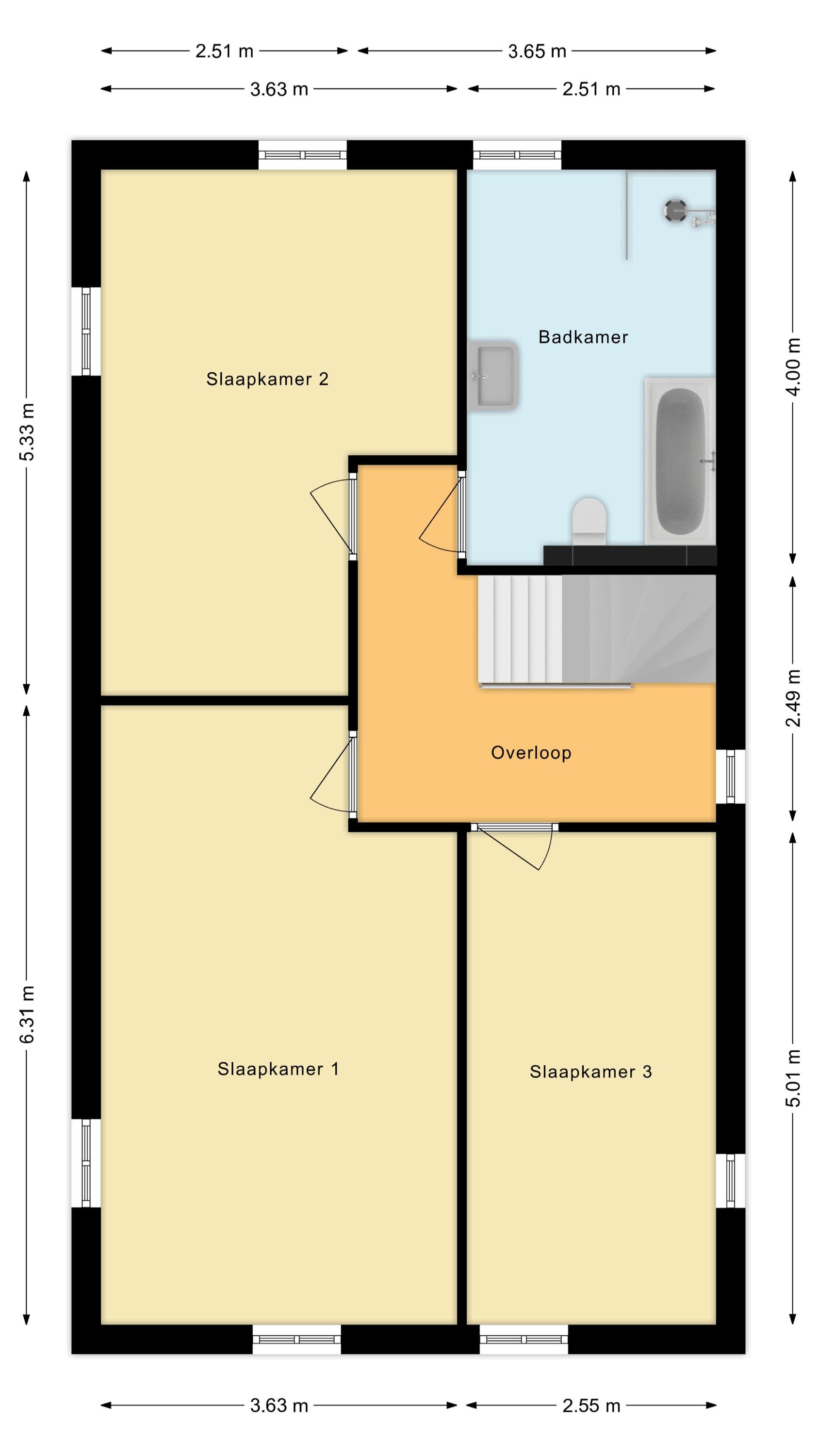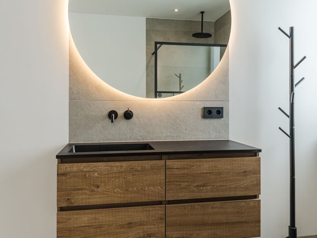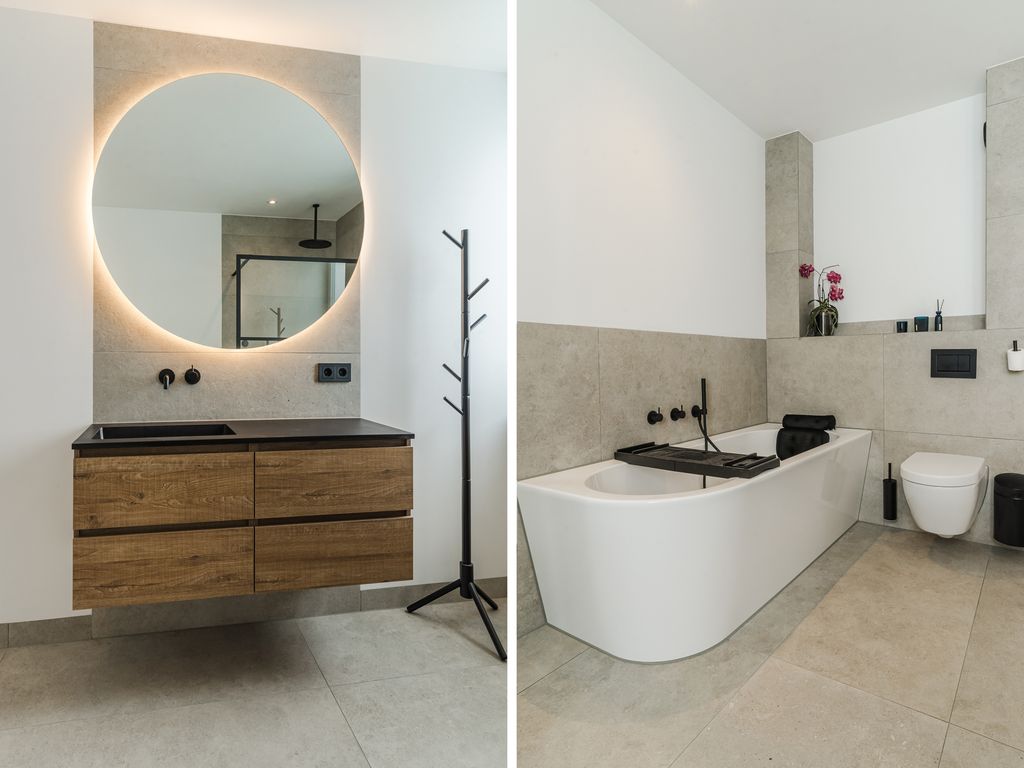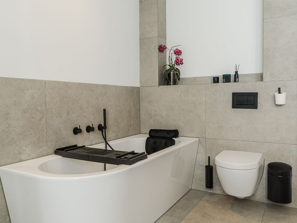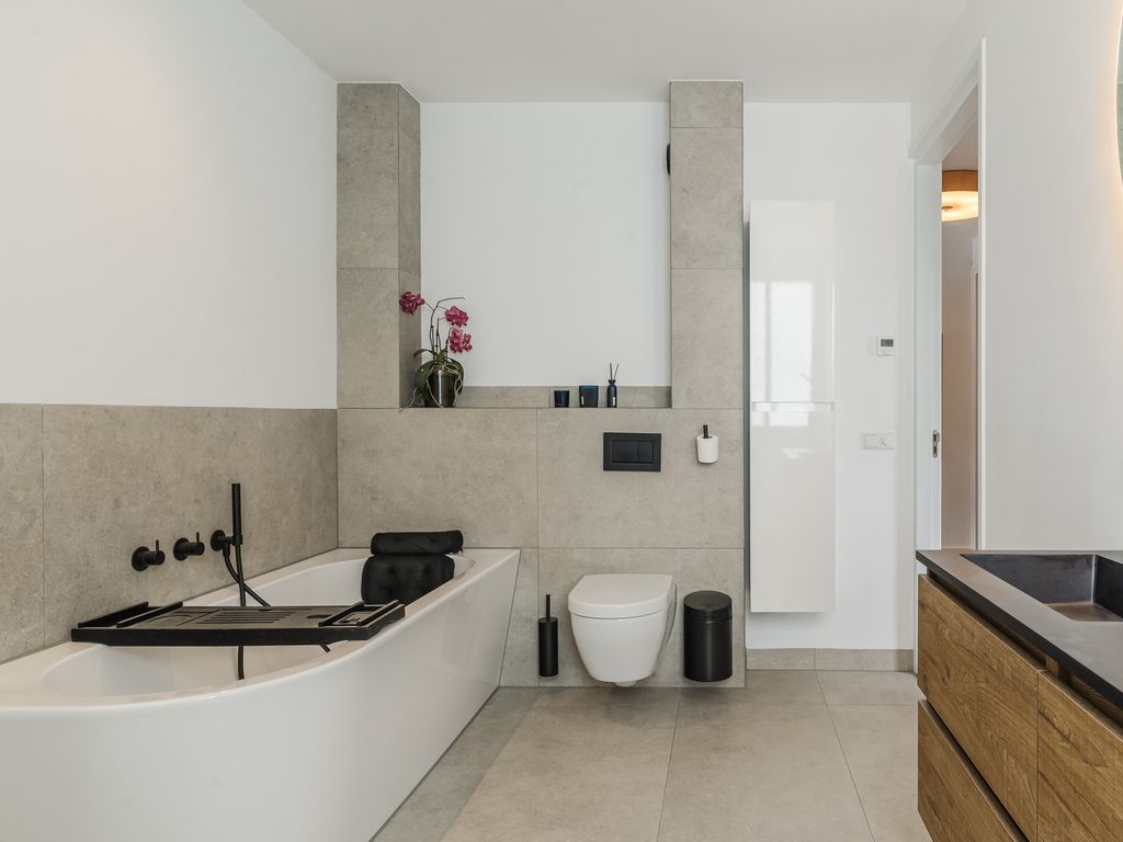| Badkamervoorzieningen | Ligbad, toilet, wastafel, wastafelmeubel en inloopdouche |