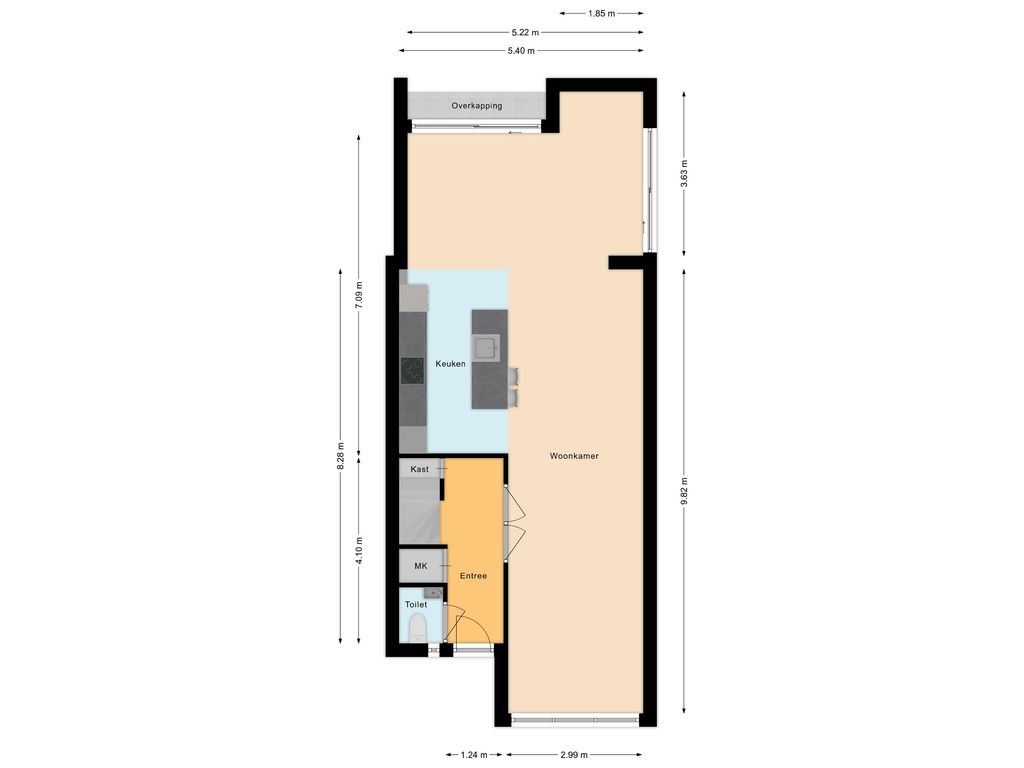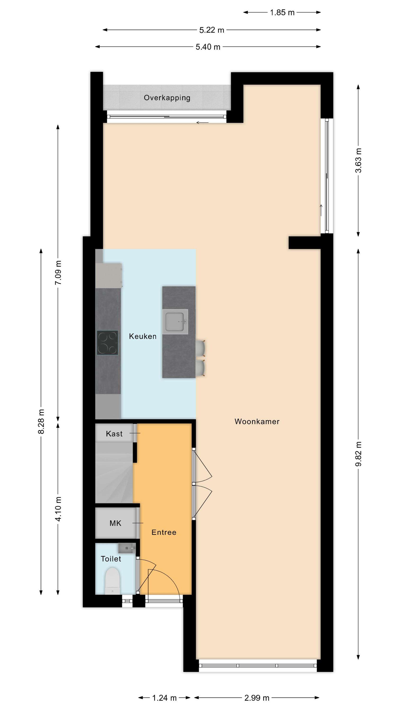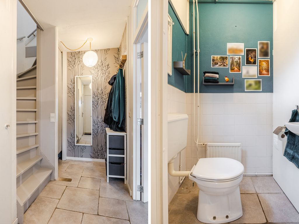 De entree geeft toegang tot de hal met meterkast, toiletruimte en een praktische trapkast met aansluitingen voor de wasapparatuur. Vanuit de hal kom je in de uitgebouwde living, die het hart van de woning vormt en direct indruk maakt door de ruimte en overzichtelijke opzet.