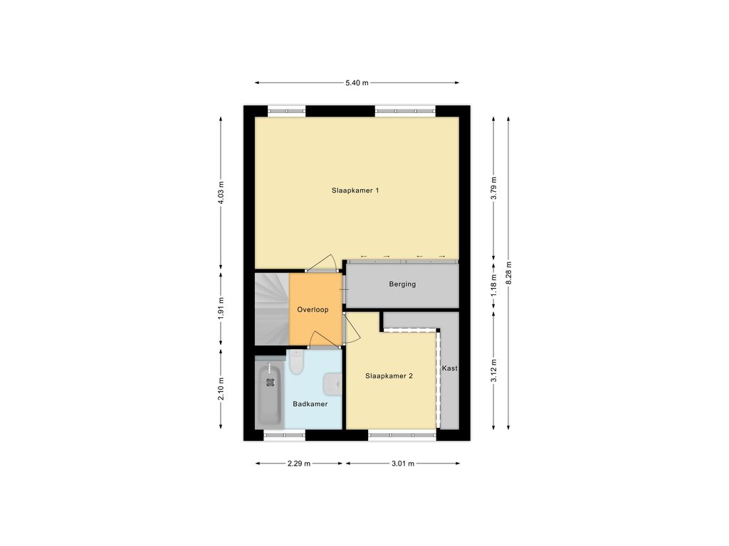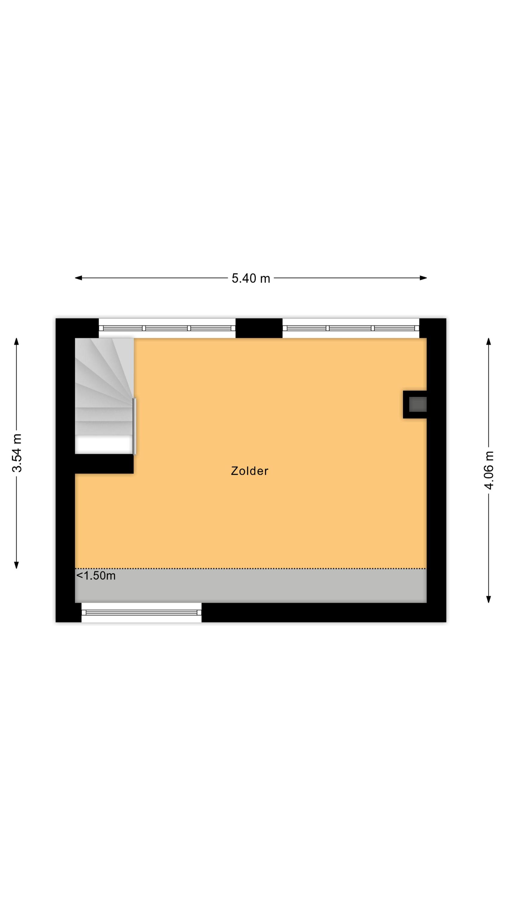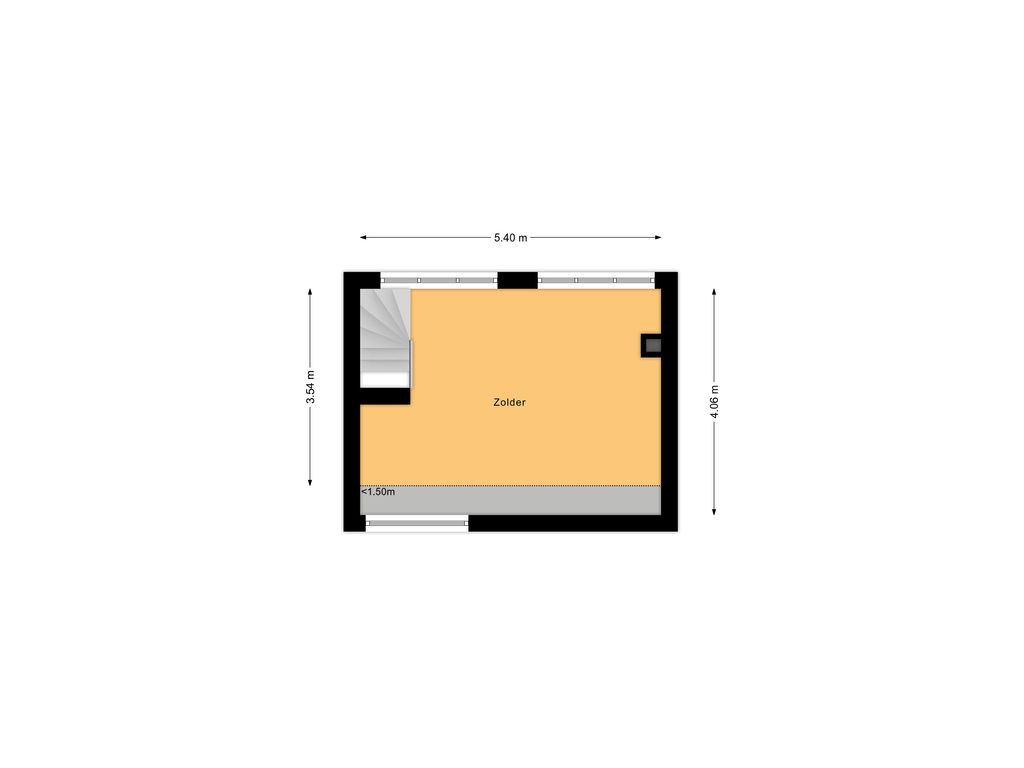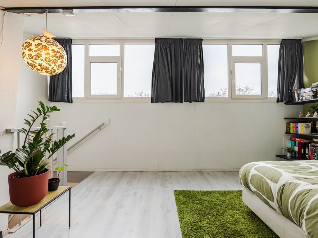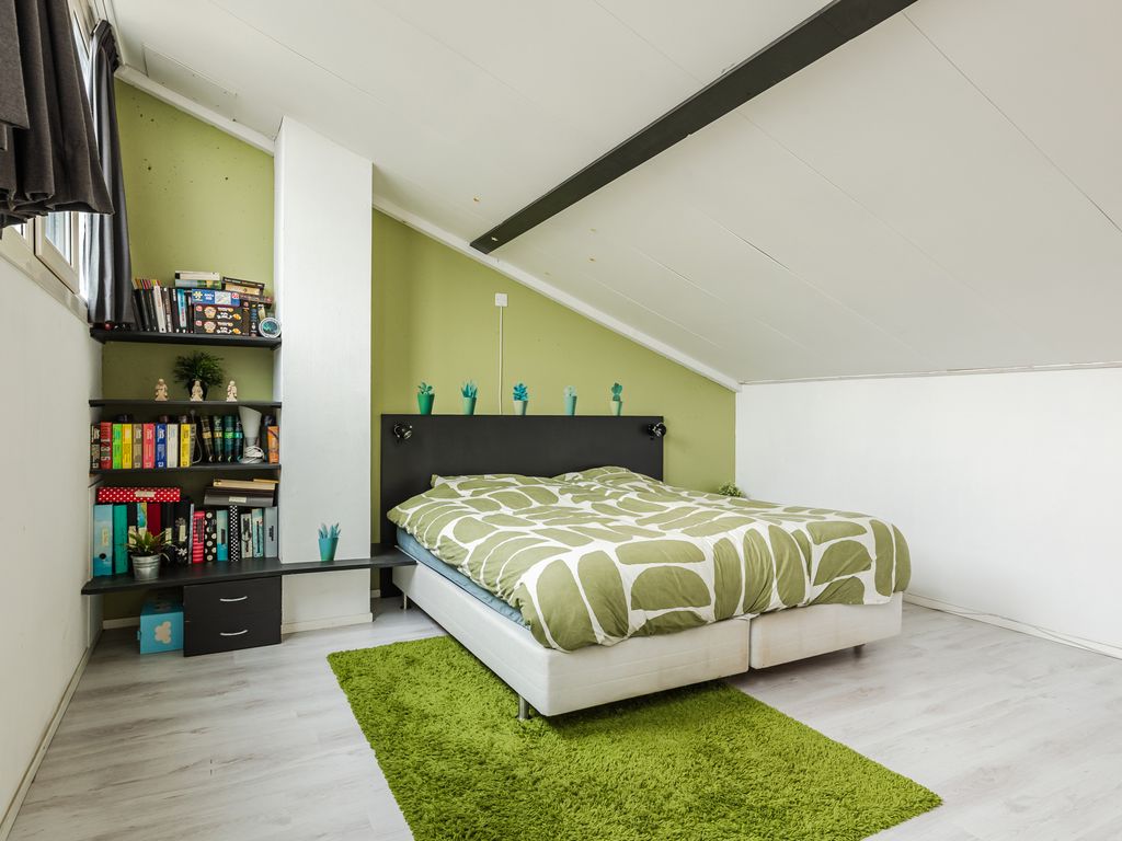 Via vaste trap bereikbare ruime derde slaapkamer met bergruimte.