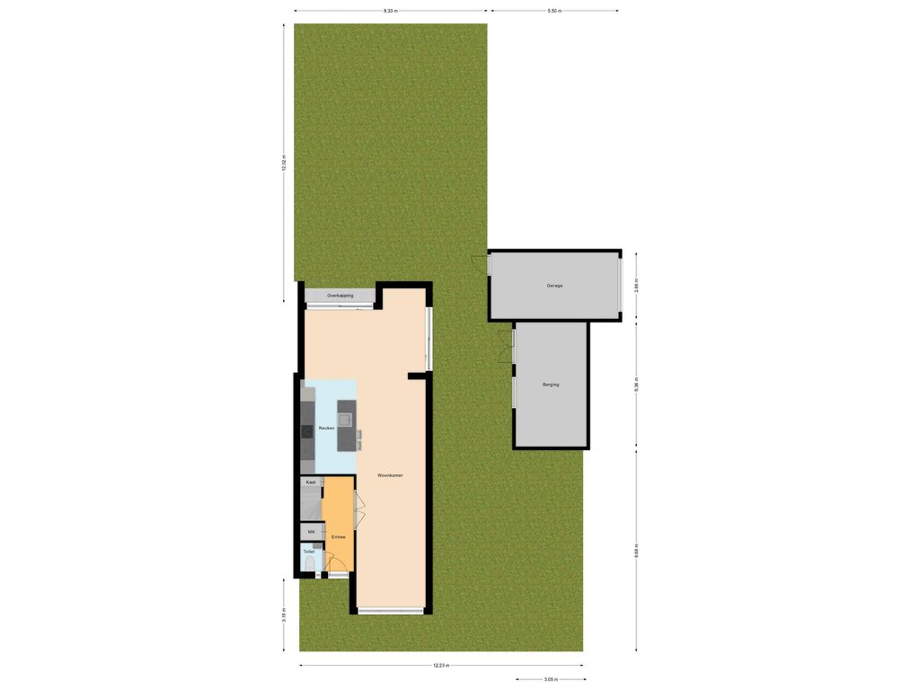 Deze uitgebouwde half vrijstaande woning is gelegen op een ruim perceel van circa 300 m². Door de uitbouw beschikt de woning over een opvallend ruim woonformaat op de begane grond (ca. 60 m²), verdeeld in een zitgedeelte, een centraal geplaatste keuken met kookeiland en een eetkamer in de uitbouw.