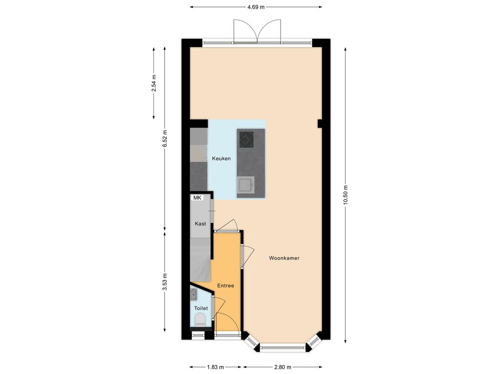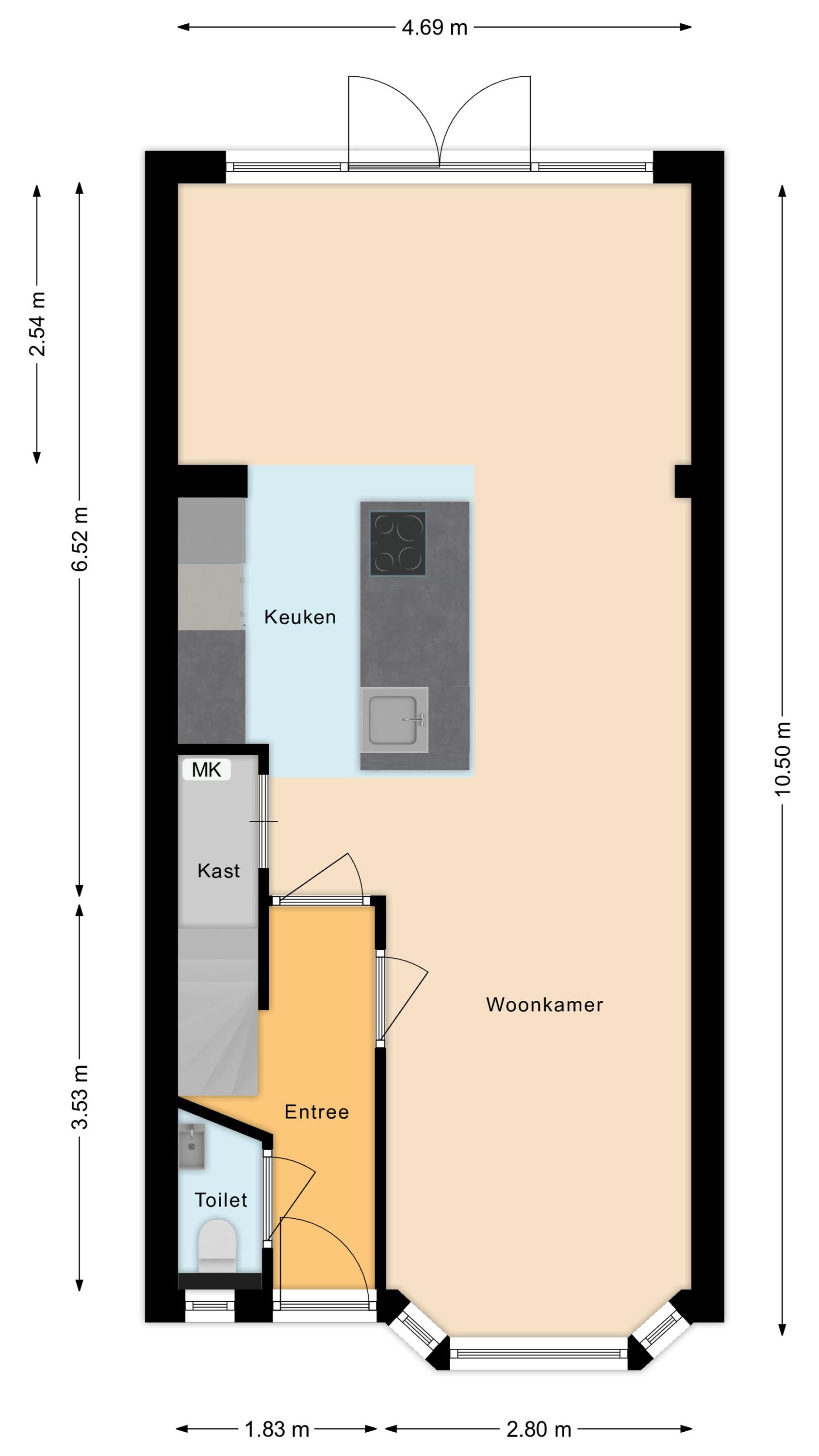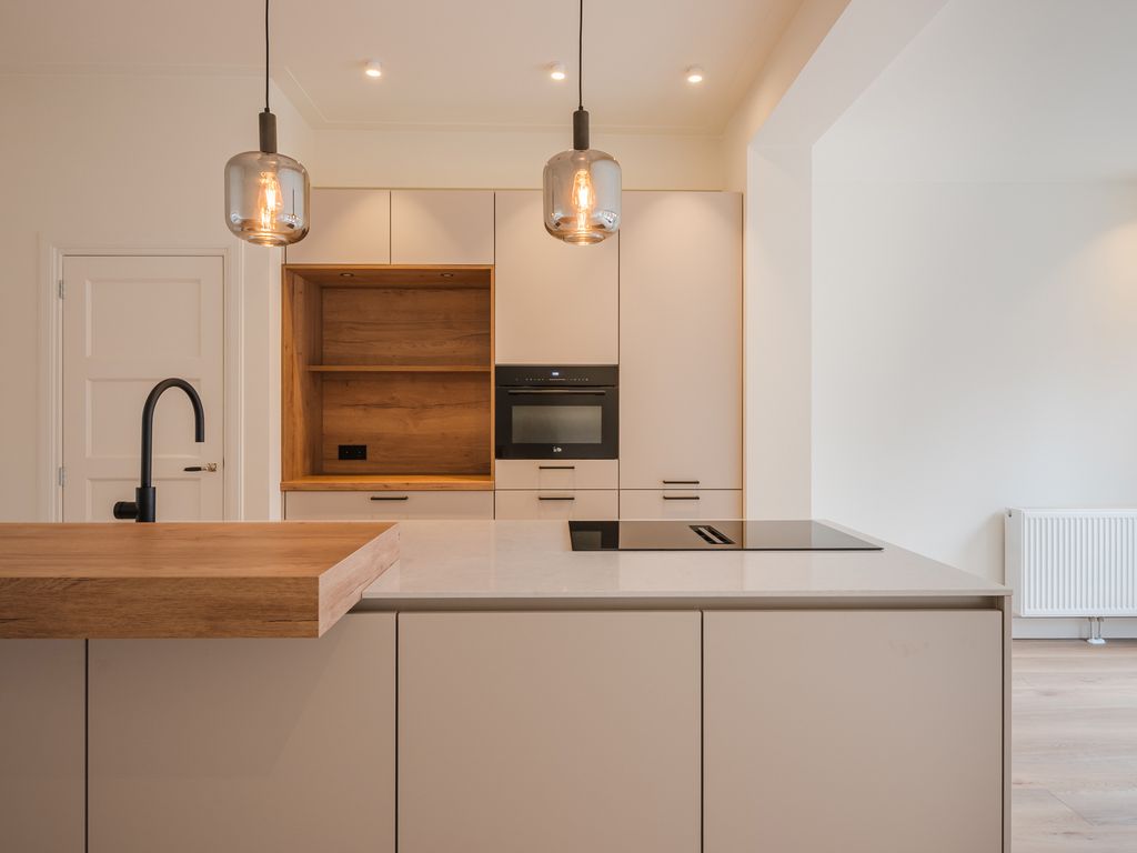 Aan de voorzijde bevindt zich de sfeervolle zitkamer met erker (ca. 11 m²). Centraal in de woning ligt de open leef keuken (ca. 18 m²), bij uitstek de plek om te koken en samen te komen.