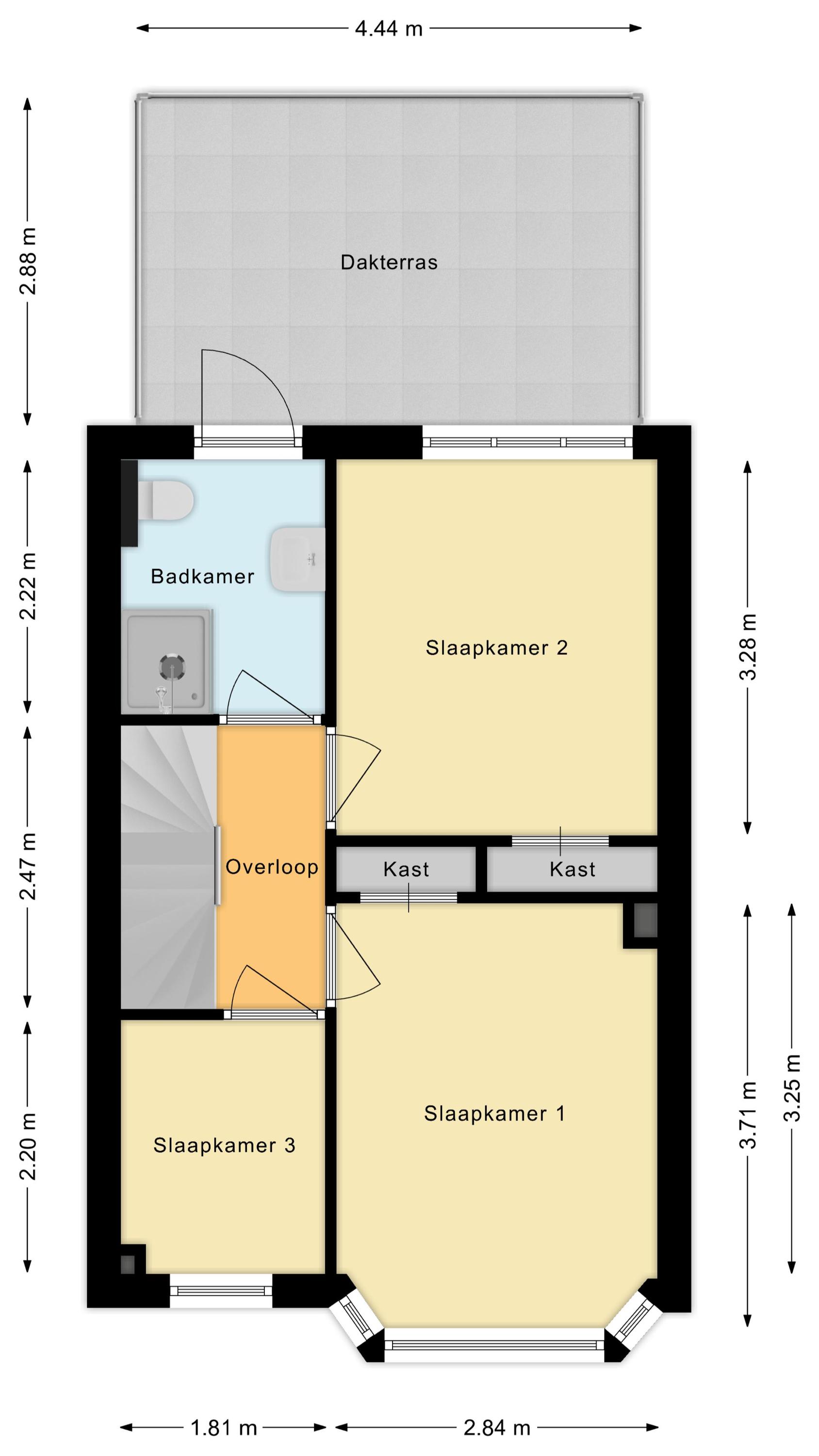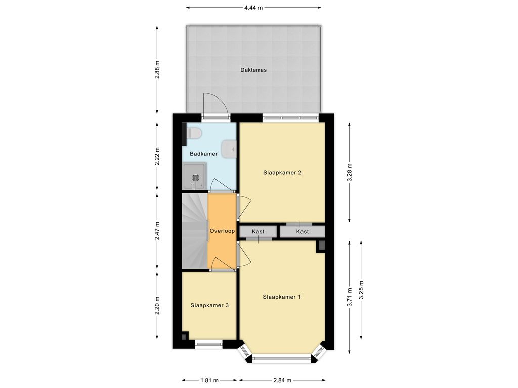 Op de eerste verdieping zijn drie slaapkamers gelegen. De twee grootste slaapkamers zijn voorzien van vaste inbouwkasten.