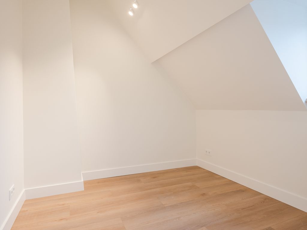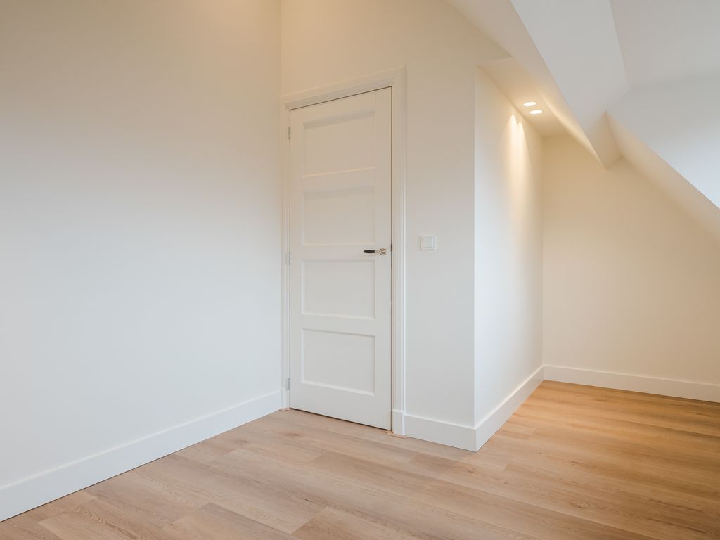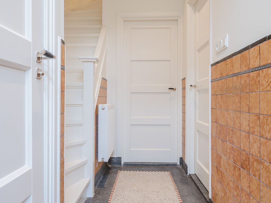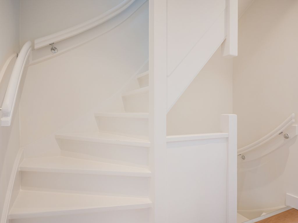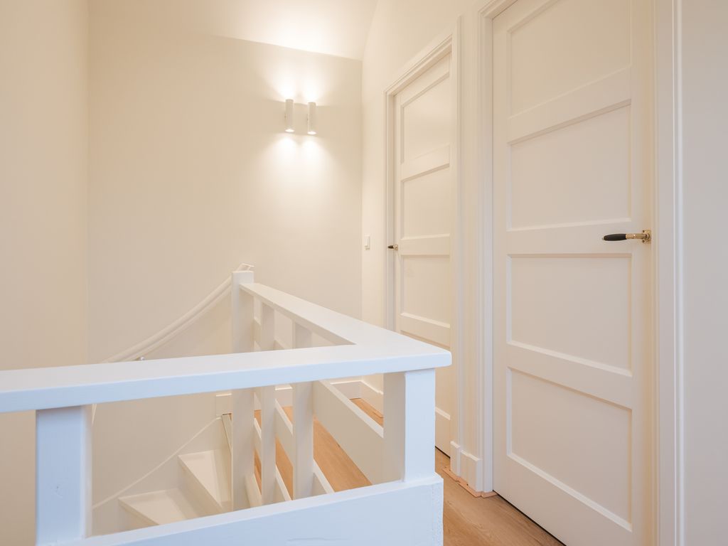 Alle verdiepingen zijn afgewerkt met pvc-vloeren. De plafonds zijn strak gestukt en voorzien van subtiele, authentiek ogende sierlijsten. Door de gehele woning zijn paneeldeuren met bijpassend deurbeslag toegepast. De kapconstructie is volledig geïsoleerd en de zinken dakgoten en regenpijpen zijn vernieuwd.