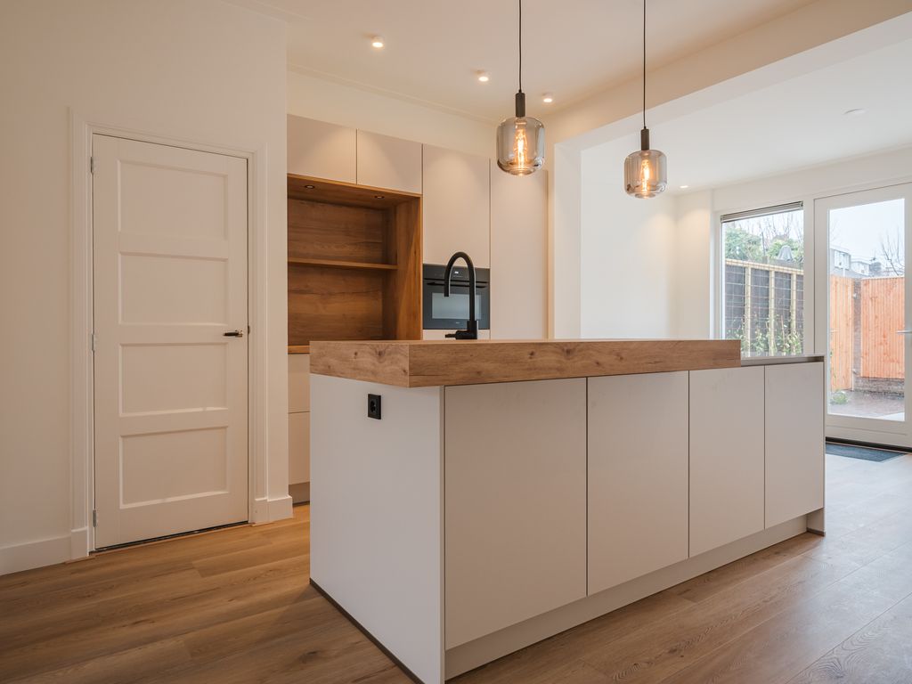 De woning is aan de achterzijde over de volle breedte uitgebouwd, waardoor een bijzonder prettige en logische indeling is ontstaan met drie woonzones.