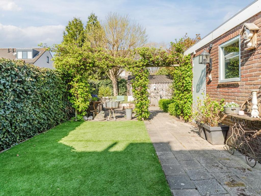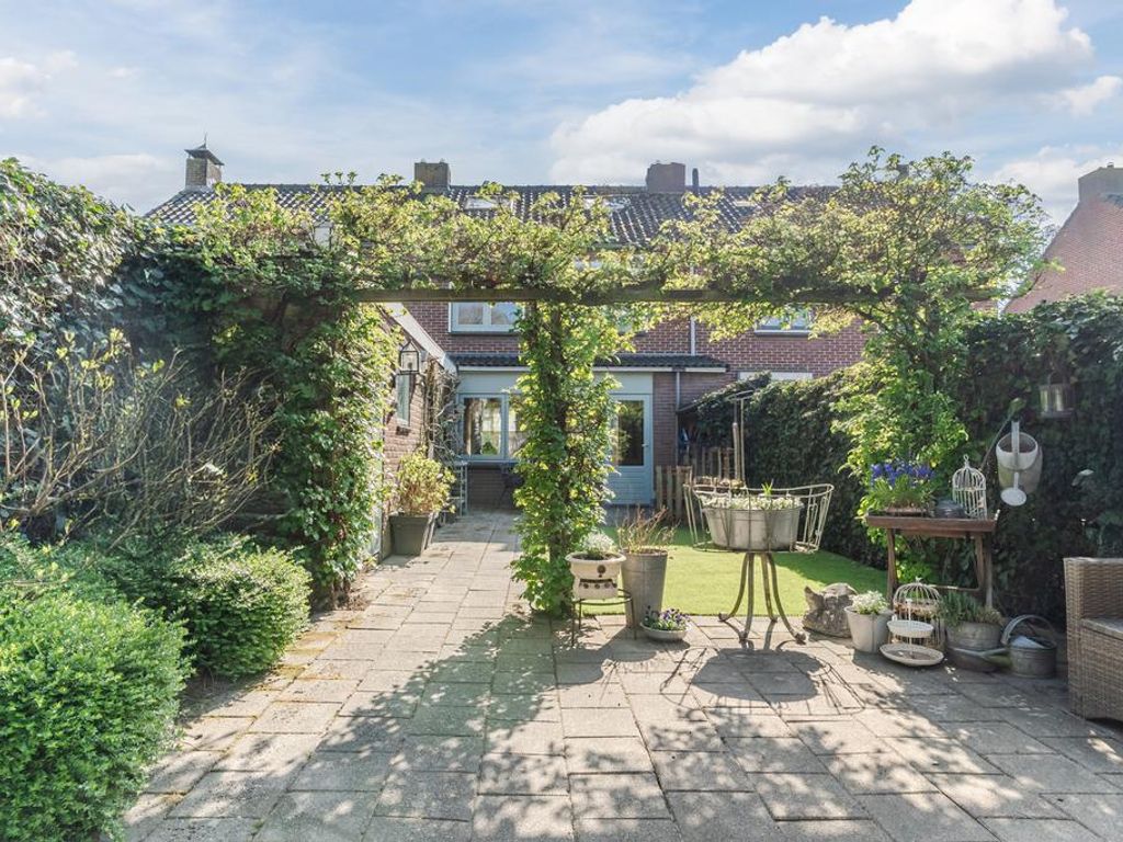 De achtertuin is met een diepte van maar liefst 14,9 meter en een breedte van 5 meter royaal te noemen. Dankzij de ligging en indeling geniet je hier zowel van zon als schaduw gedurende de dag. De tuin is fraai aangelegd met twee terrassen, een gazon en een afwisselende beplanting, waaronder een sfeervolle pergola begroeid met hortensia.