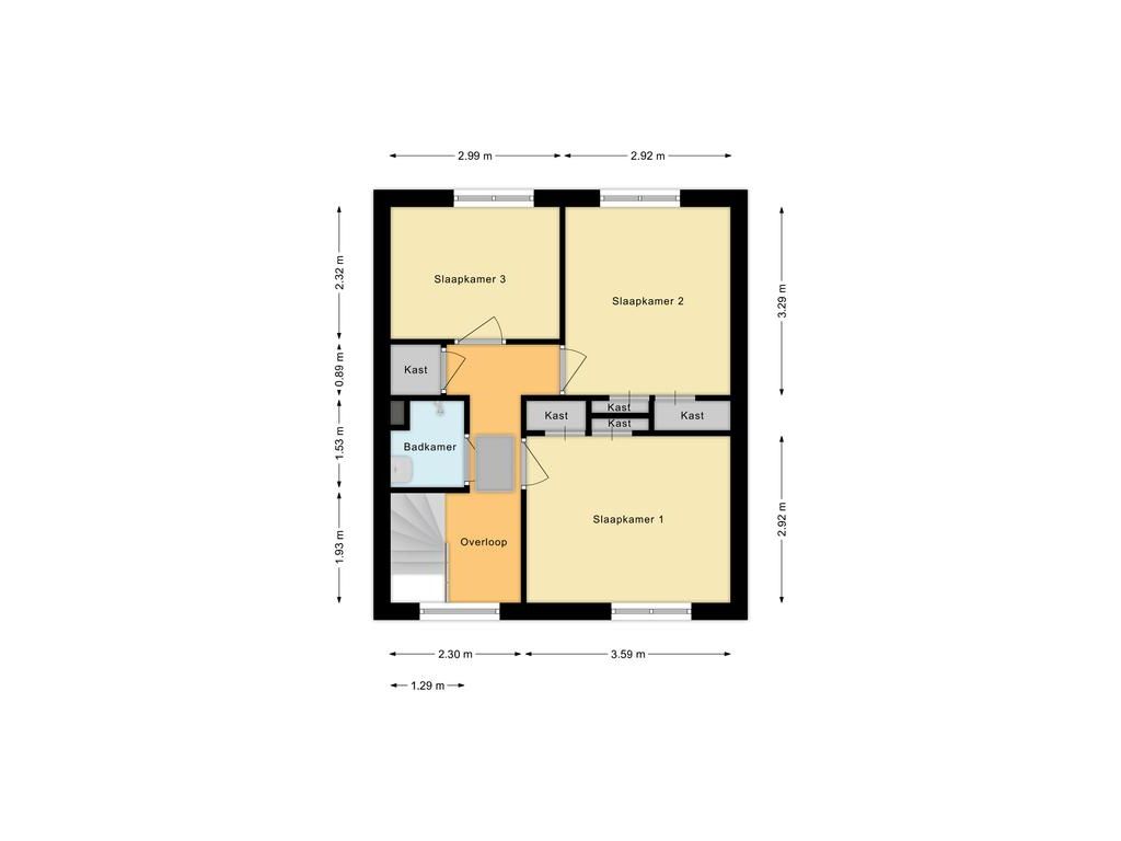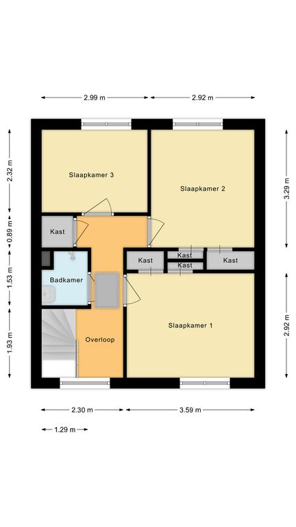Er zijn drie slaapkamers op deze verdieping, waarvan twee kamers beschikken over twee vaste inbouwkasten. De kamers zijn ruim van formaat!