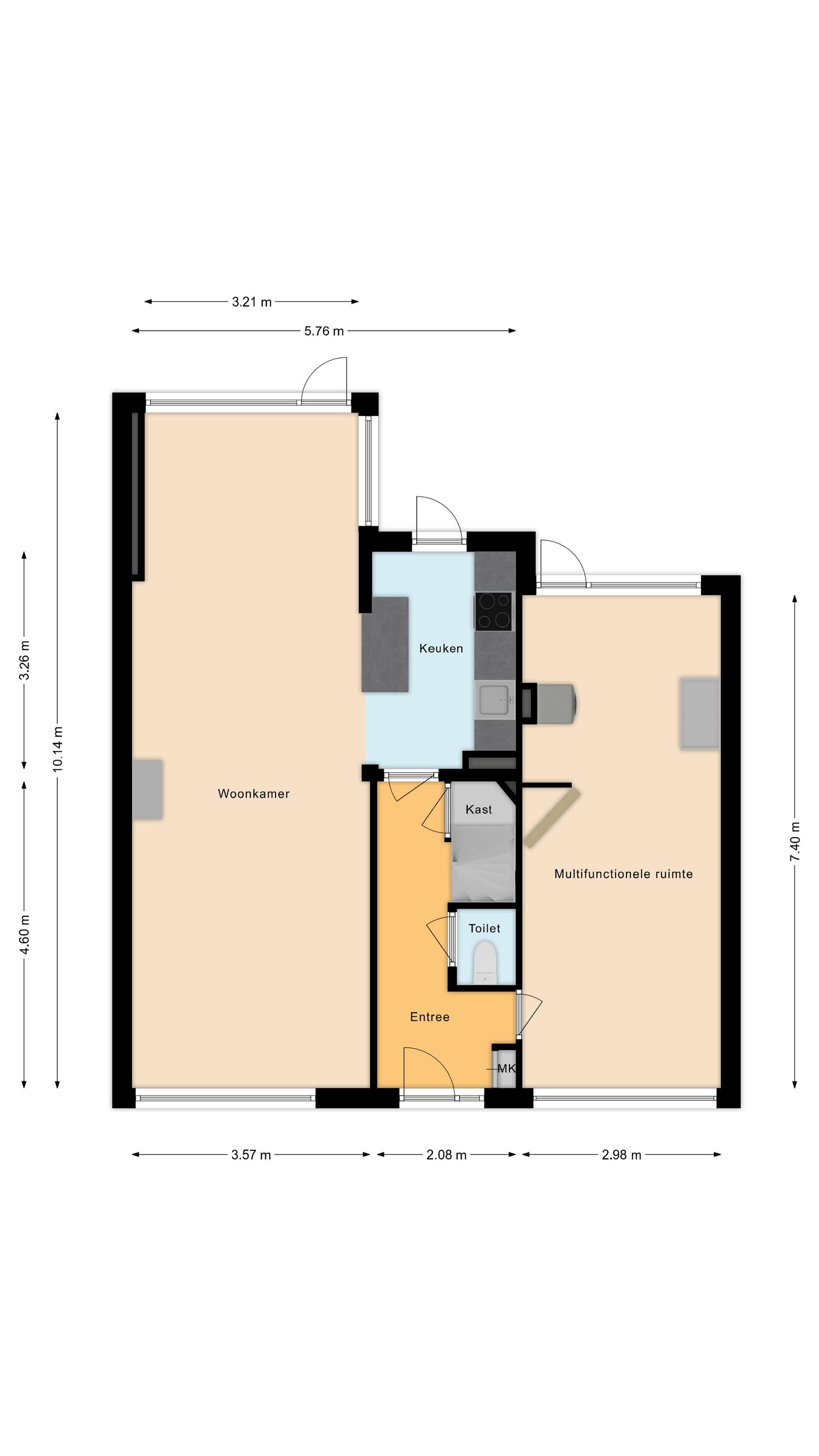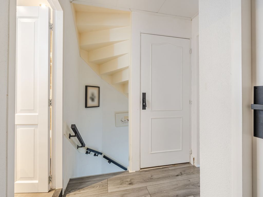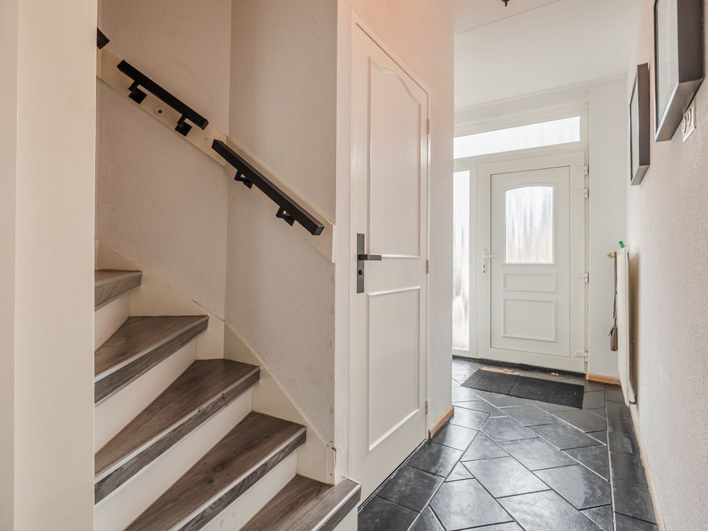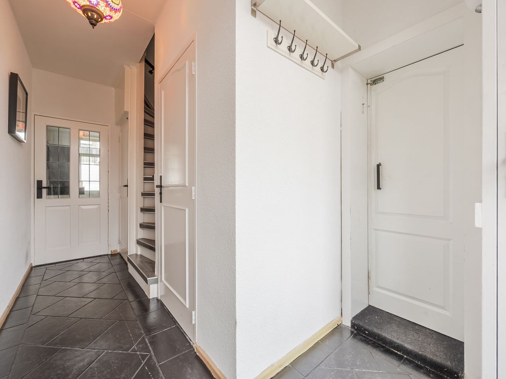 Aan de voorzijde beschikt de woning over een oprit, geschikt voor een kleinere auto. Via de entree kom je in de hal met meterkast, toiletruimte, trapopgang en een praktische trapkast. Vanuit de hal zijn zowel de keuken als de aangebouwde ruimte bereikbaar.
