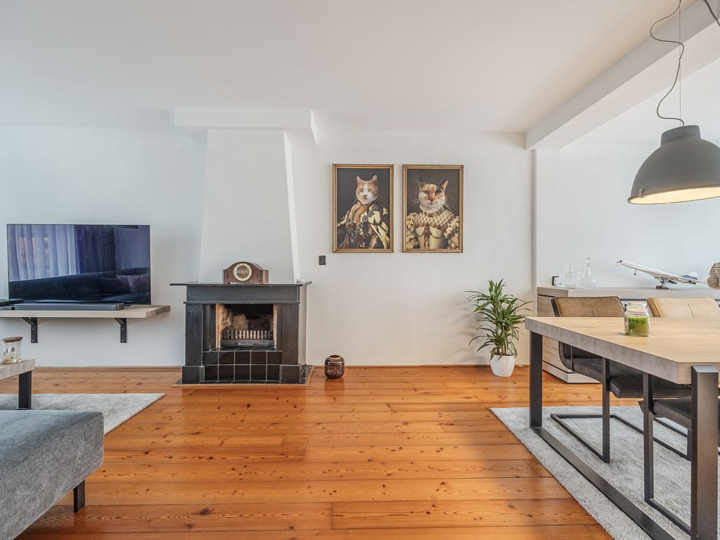 De uitgebouwde woonkamer heeft een oppervlakte van circa 36 m² en beschikt over een antieke schouw ten behoeve van een open haard. Zowel vanuit de woonkamer als vanuit de keuken is de tuin bereikbaar.