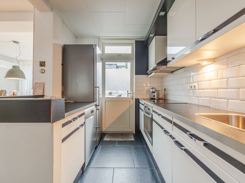De open keuken dateert uit 2012 en is voorzien van een inbouwkeuken met een keramische kookplaat, afzuigkap, oven, magnetron, vaatwasser en een koel-/vriescombinatie (ter overname). Vanuit de keuken is er directe toegang tot de achtertuin.