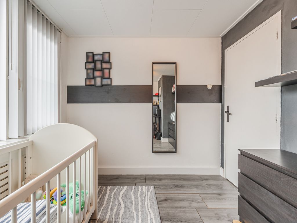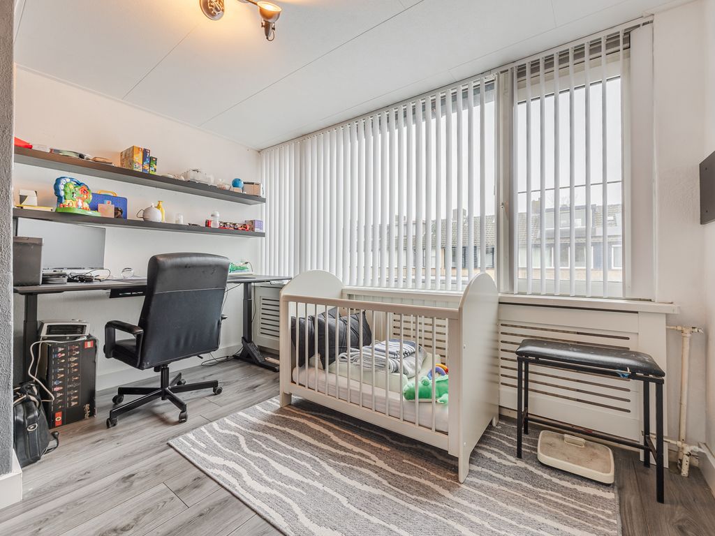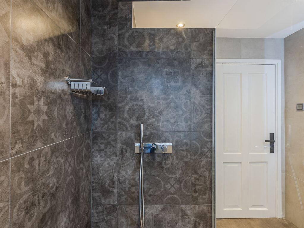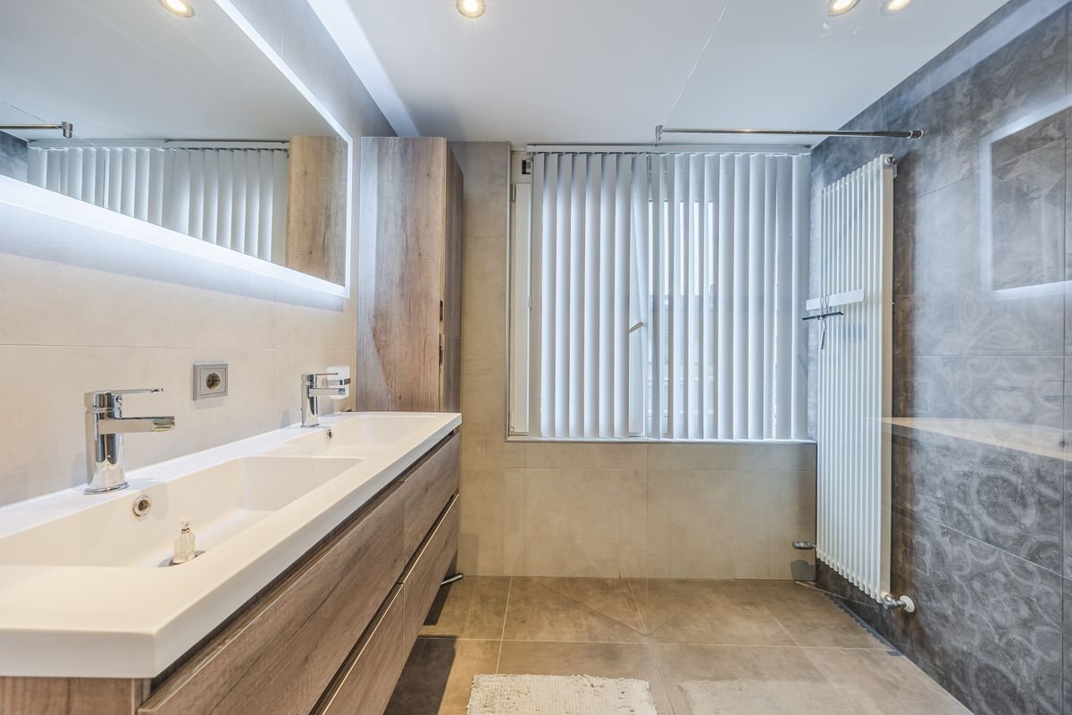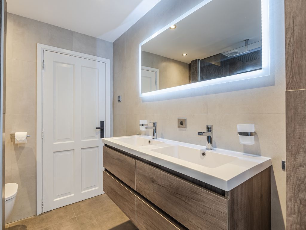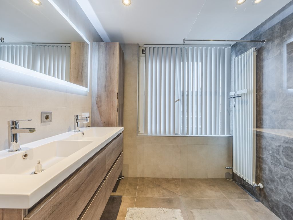 Op de eerste verdieping bevindt zich een ruime overloop met toegang tot drie slaapkamers. De voormalige badkamer is momenteel in gebruik als inloopkast. In 2021 is één van de slaapkamers verbouwd tot de huidige badkamer, ingericht met een ruime inloopdouche, een tweede toilet (wandcloset), een dubbele wastafel met meubel, designradiator, mechanische afzuiging en een raam.
