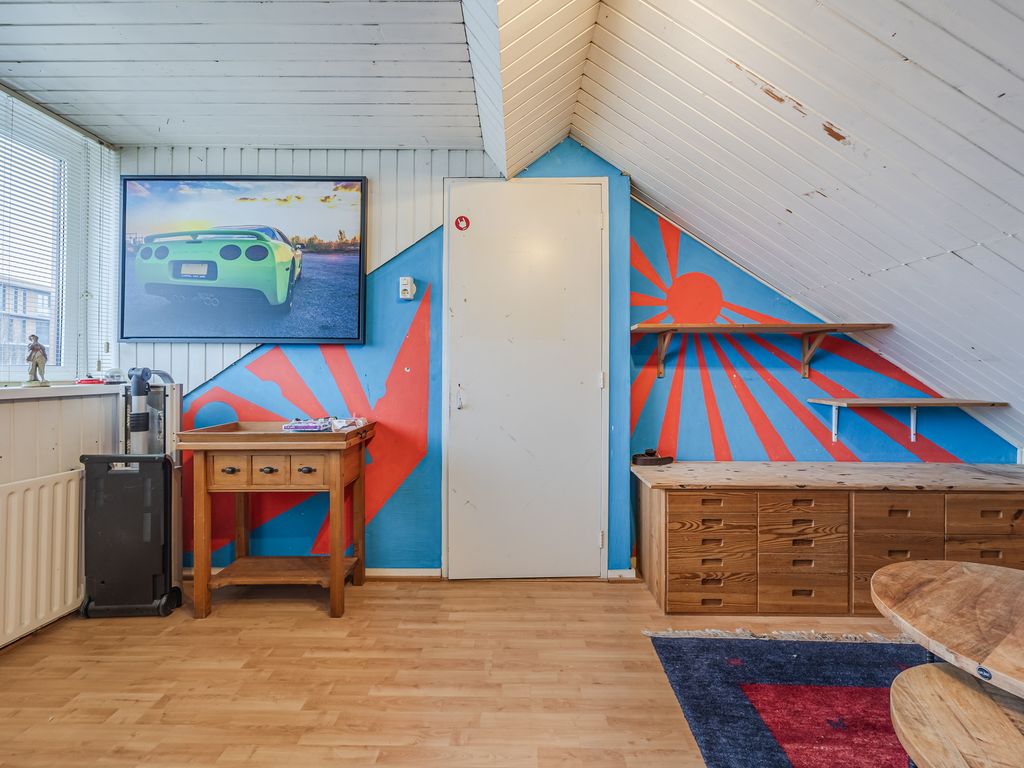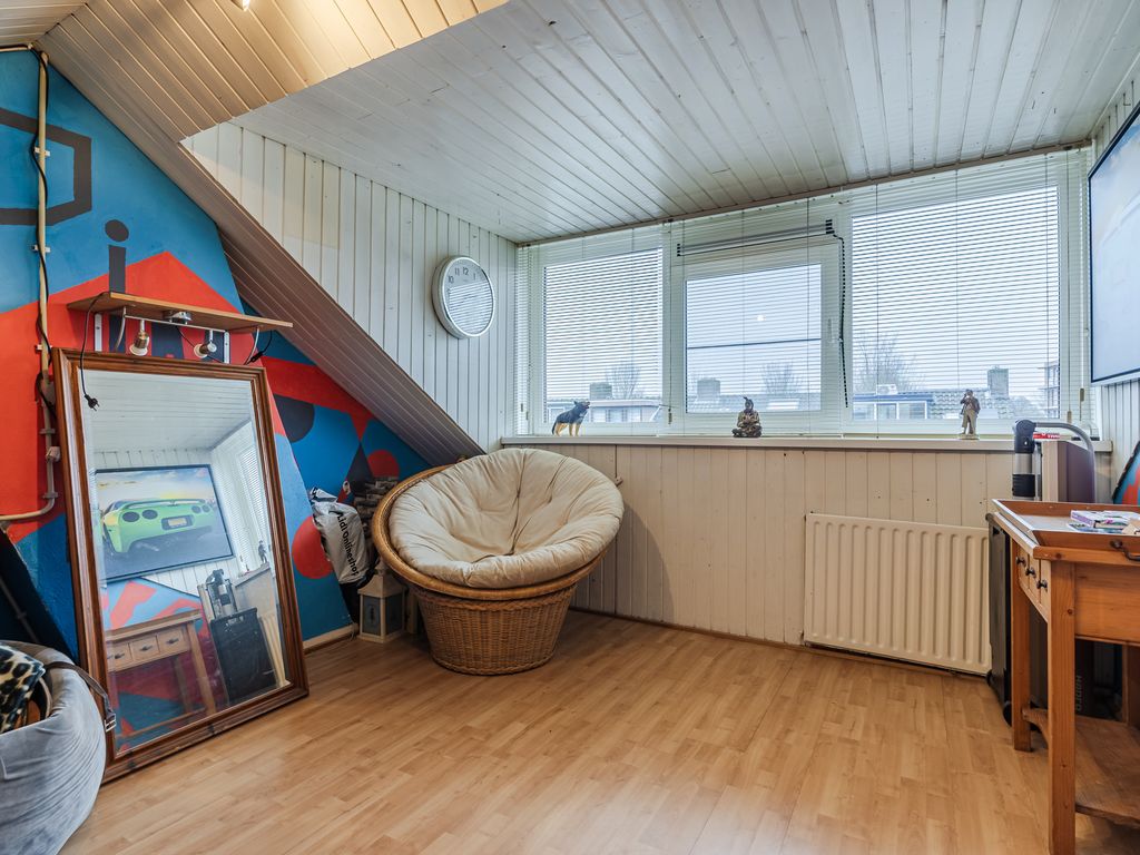 De zolderkamer, met een afmeting van circa 3,50 x 4,70 meter, is voorzien van een groot dakkapel en biedt een volwaardige extra kamer.