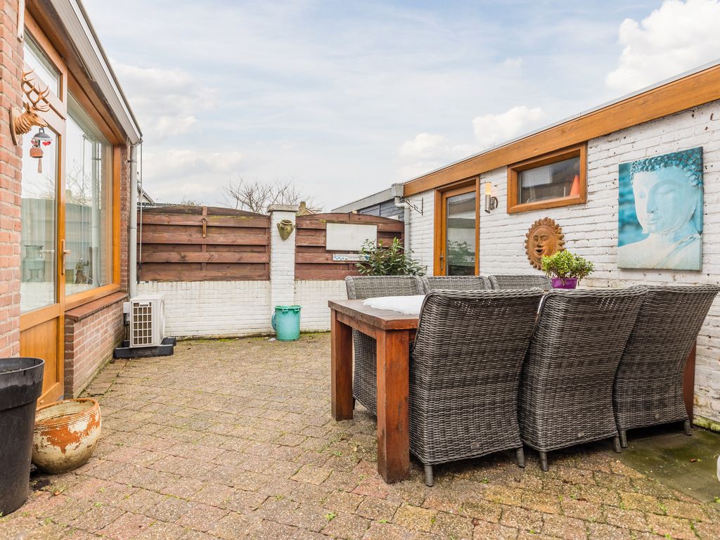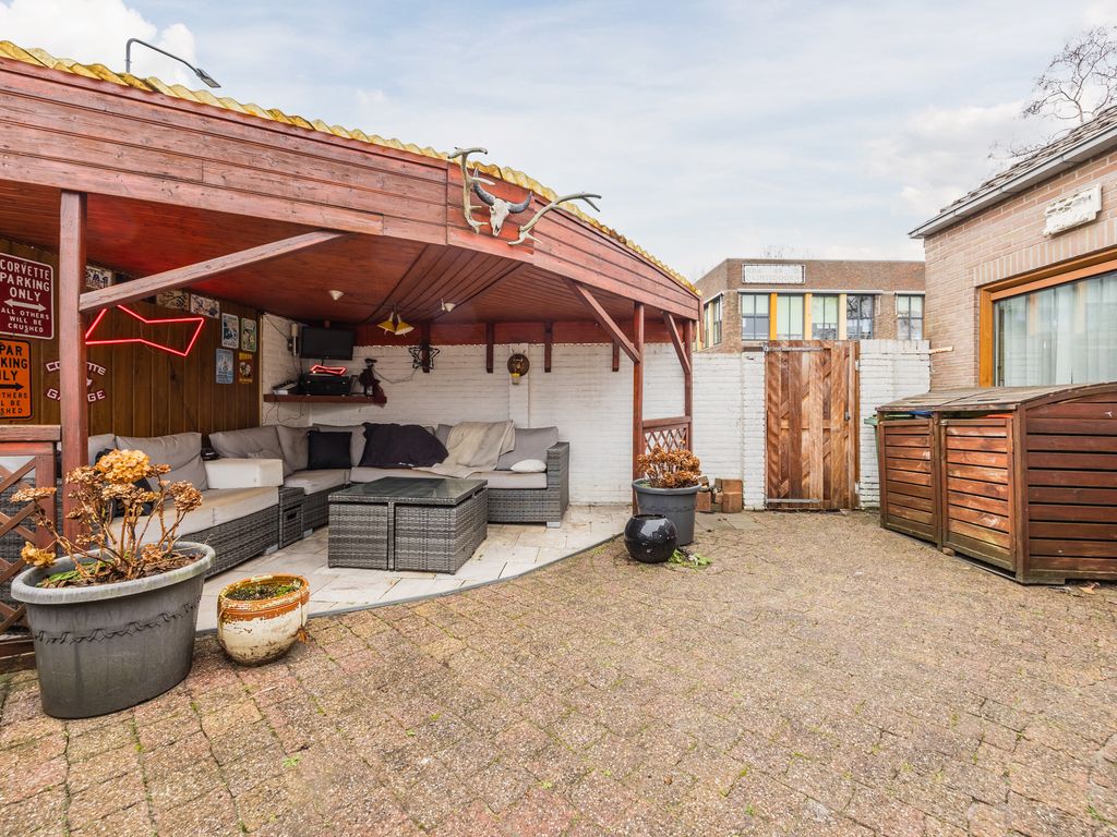 De achtertuin is circa 6,20 meter diep en 9,35 meter breed en is gelegen op het westen, waardoor er prettig gebruik kan worden gemaakt van de middag- en avondzon. De tuin is onderhoudsarm aangelegd, beschikt over een overkapping en is bereikbaar via een achterom.