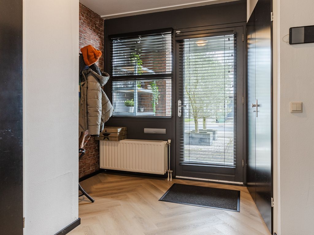 Entree in een ruime multifunctionele ruimte die direct in verbinding staat met de open woonkeuken. Deze opzet maakt de begane grond anders dan gebruikelijk en geeft de woning een eigen karakter.