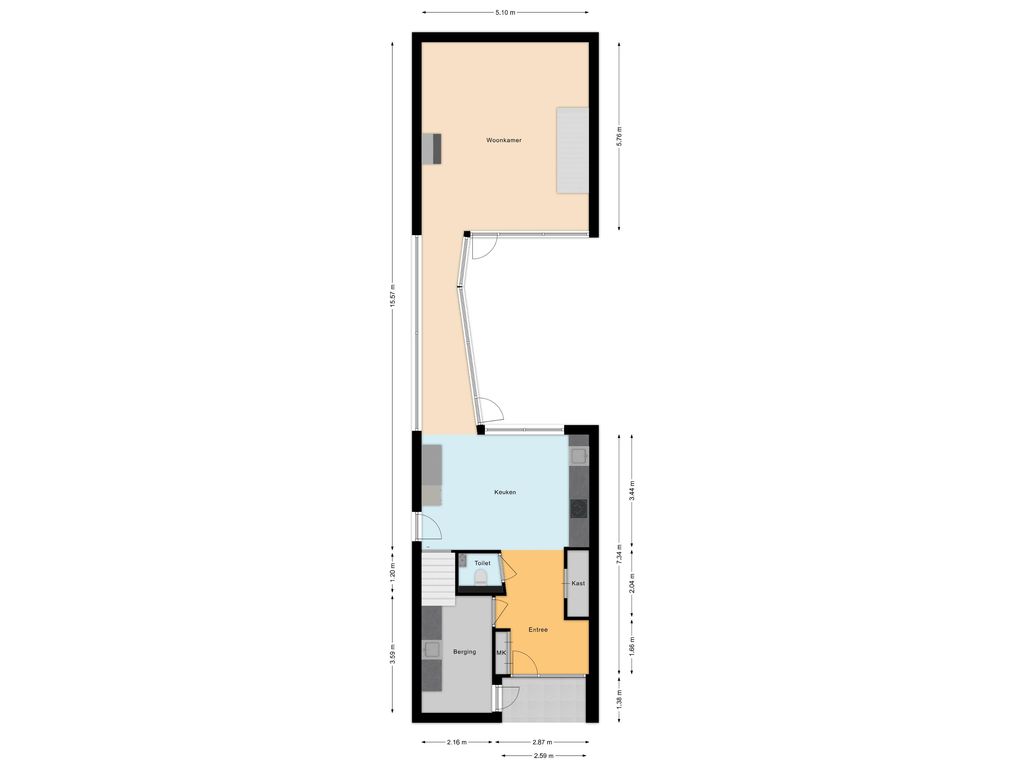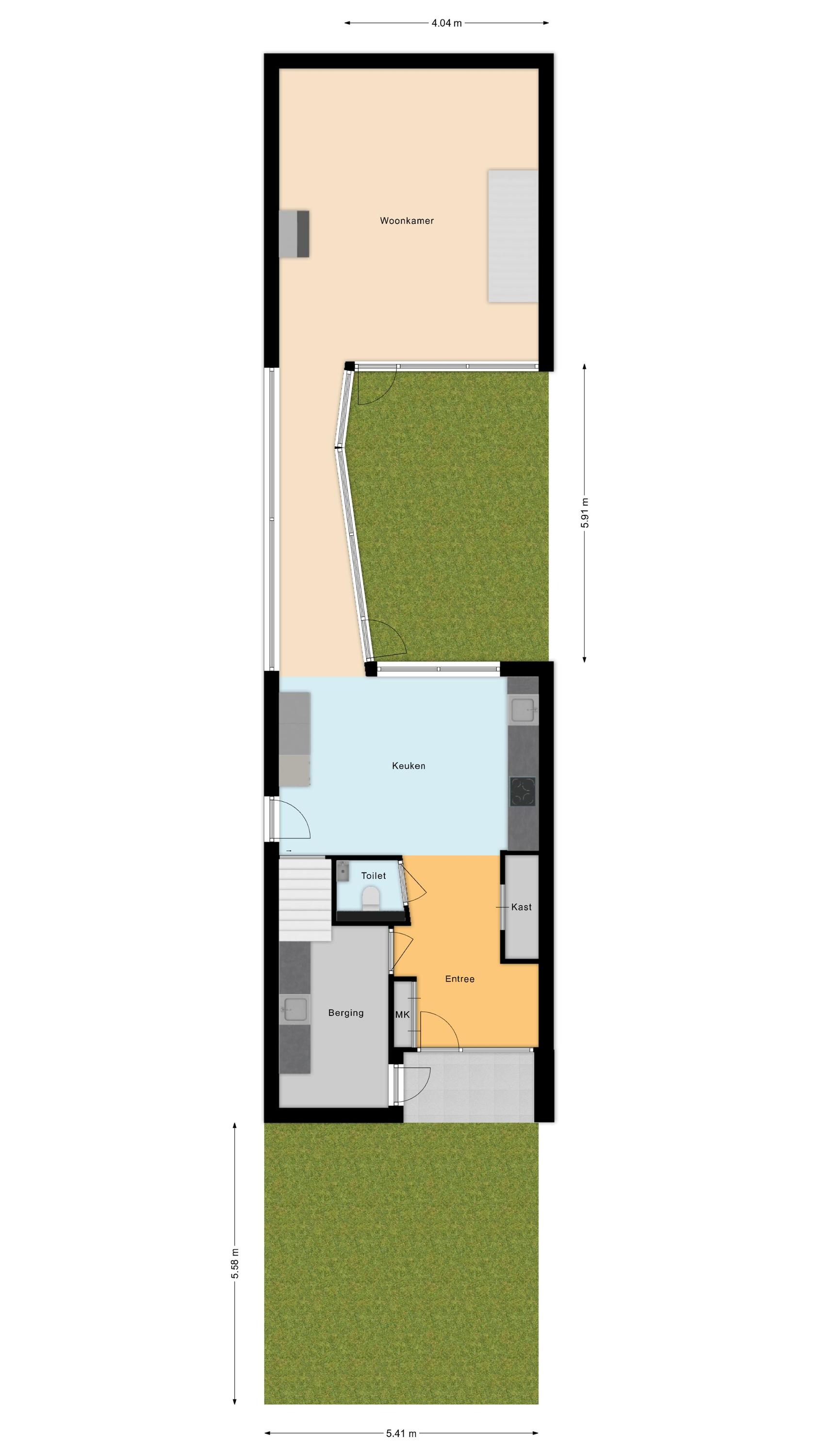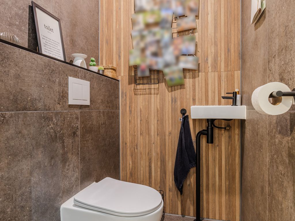 De toiletruimte op de begane grond is vernieuwd en uitgevoerd met een wandcloset en fonteintje. Vanuit de hal is tevens de inpandige berging bereikbaar. Deze berging beschikt tevens over een deur naar buiten.
