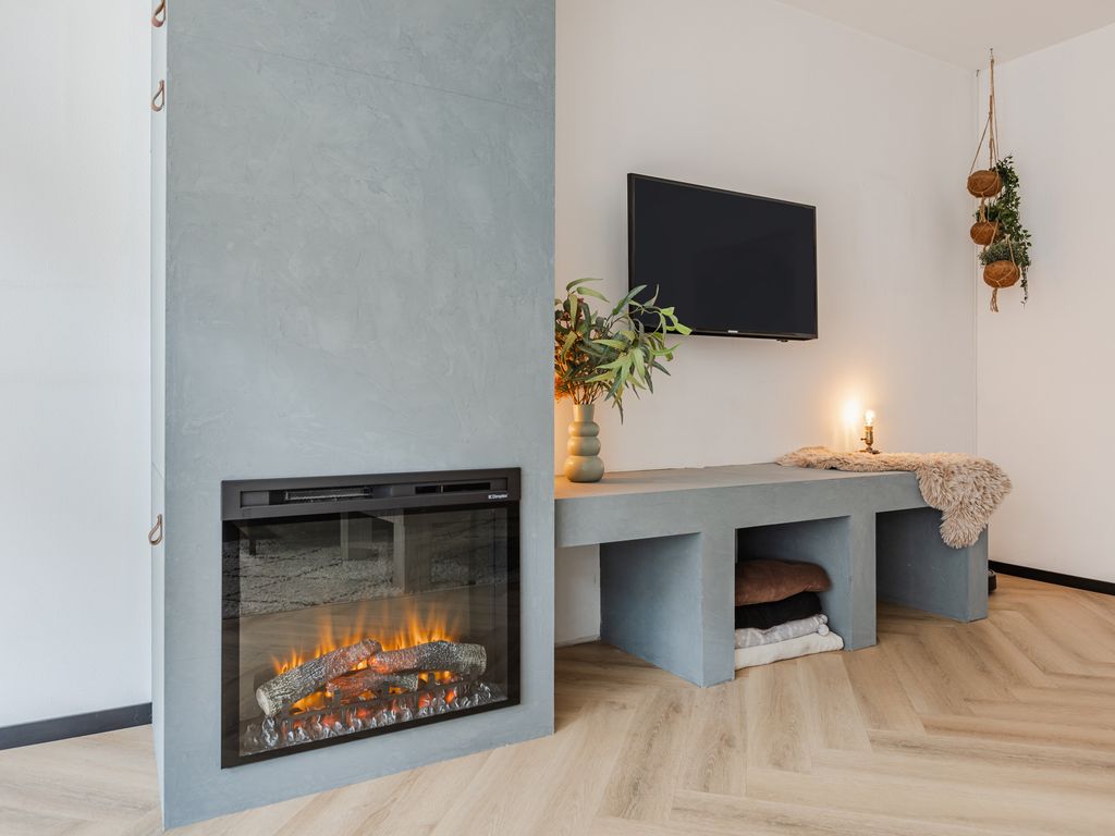 De woonkamer is ruim van opzet en voorzien van een schouw met elektrische inbouwhaard en een loopdeur naar de patio.