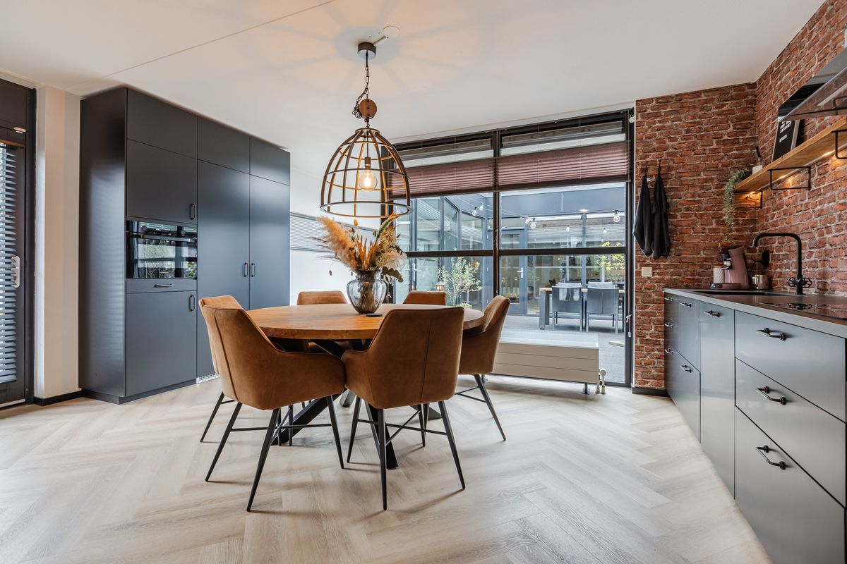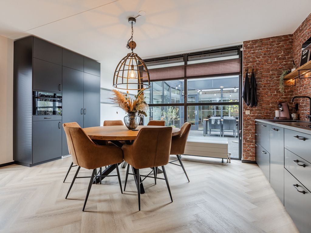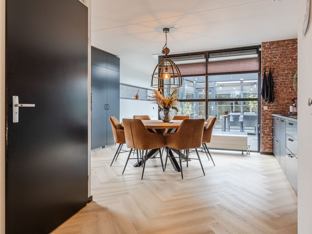 Bij binnenkomst valt direct de bijzondere indeling op. Je komt binnen in een ruime multifunctionele ruimte met aansluitend de open woonkeuken.