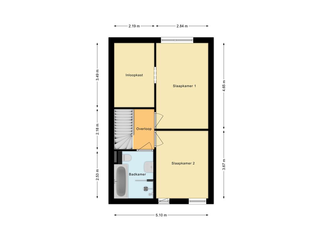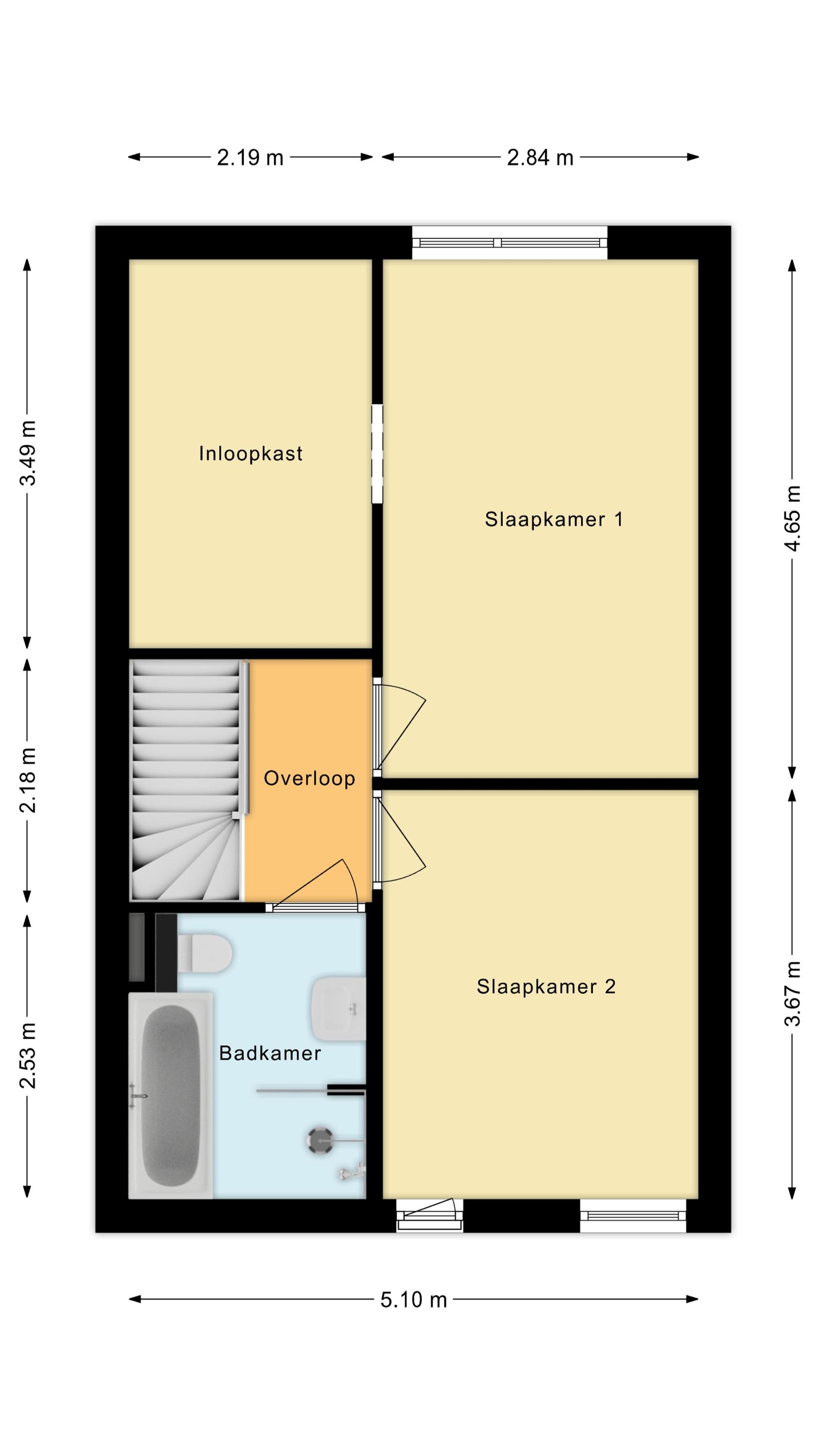Overloop met toegang tot twee slaapkamers (voorheen drie). De oorspronkelijke indeling is eenvoudig terug te brengen.