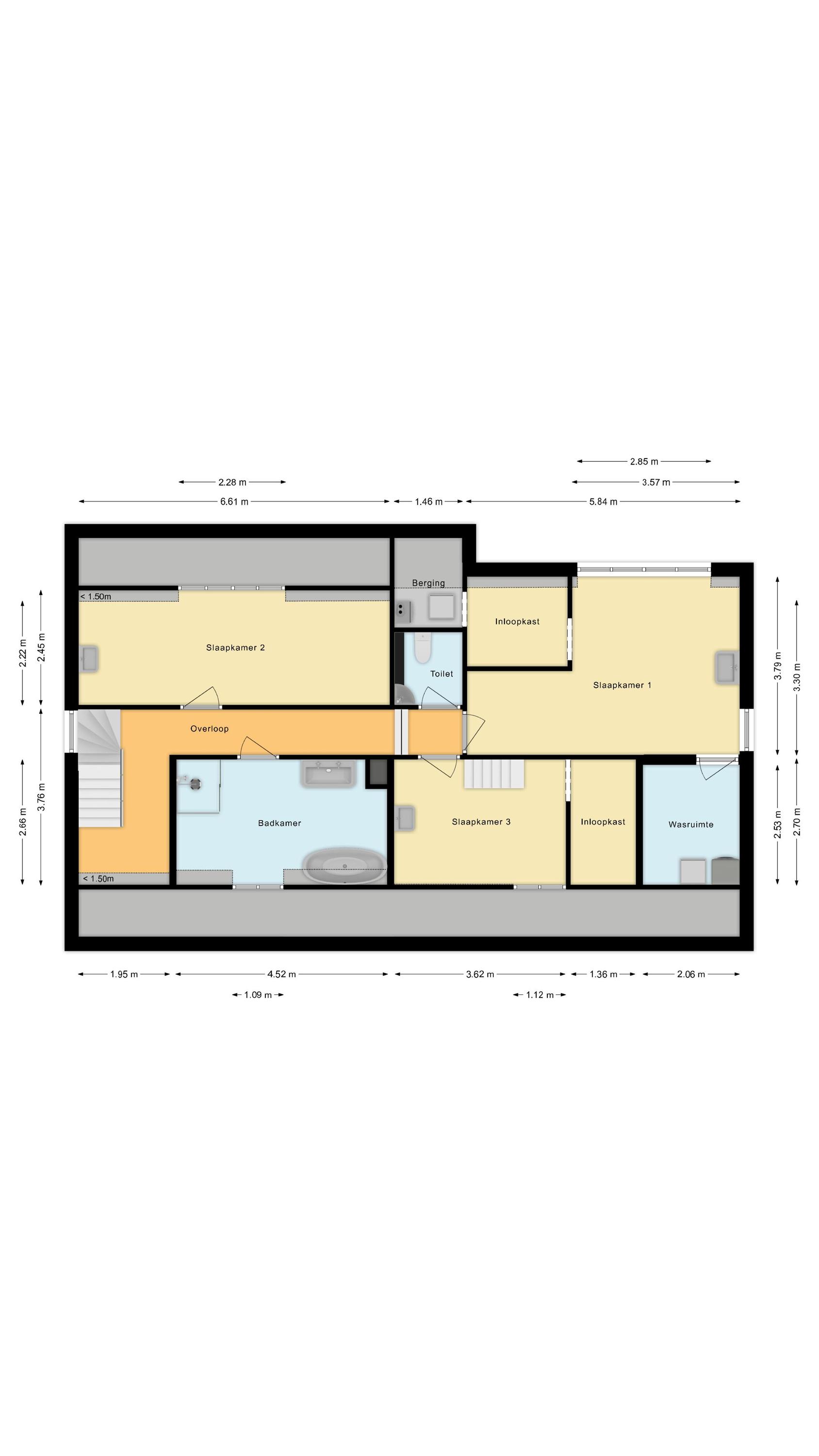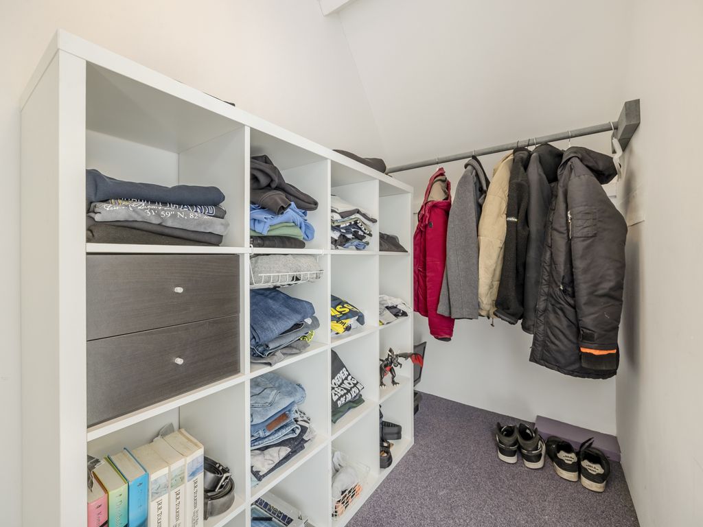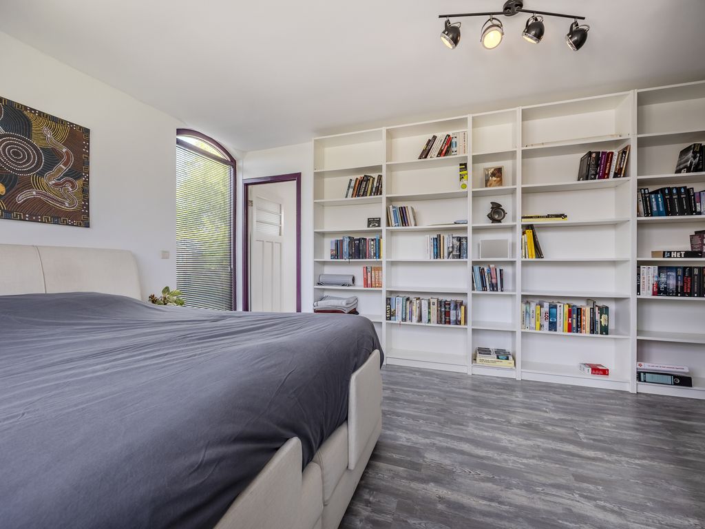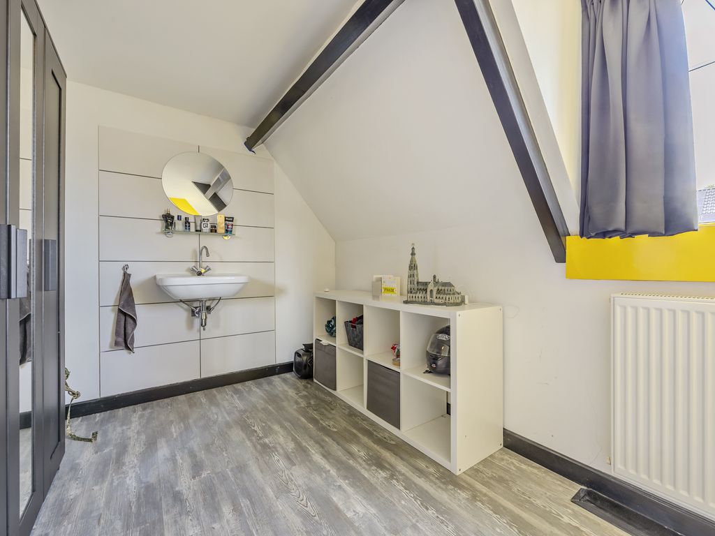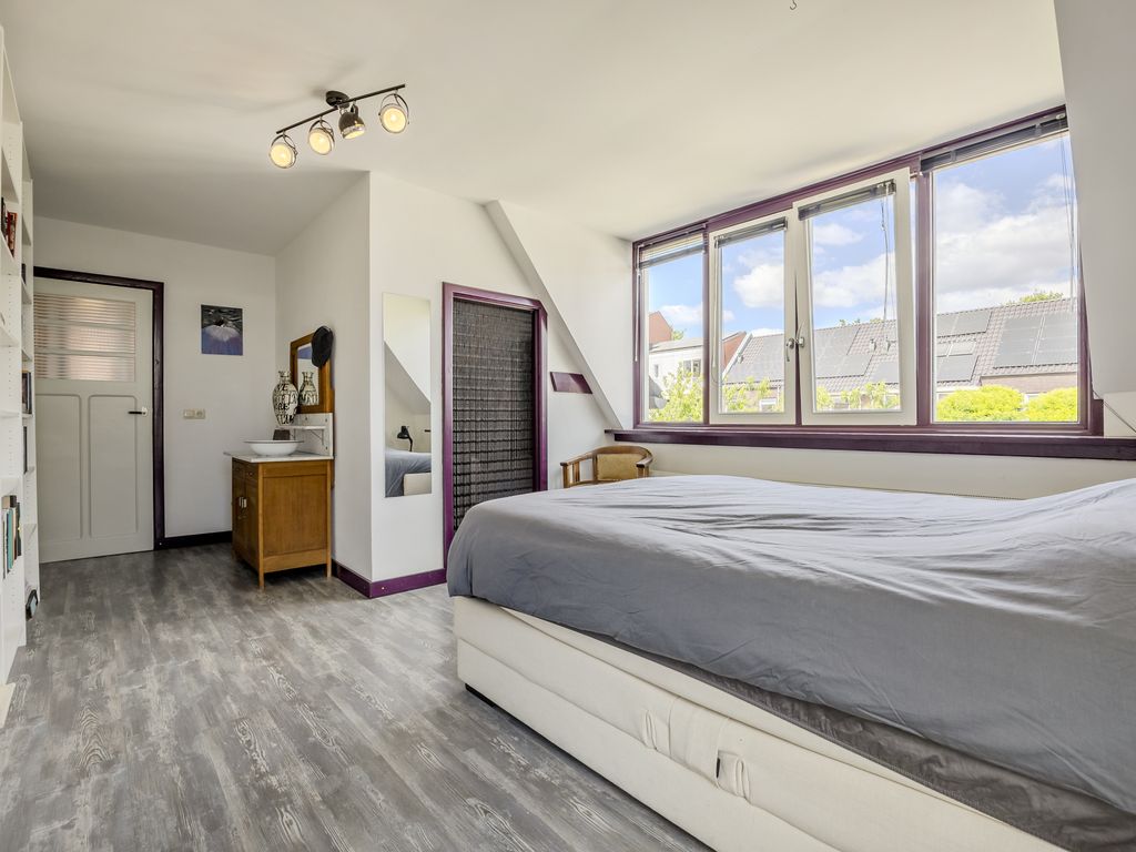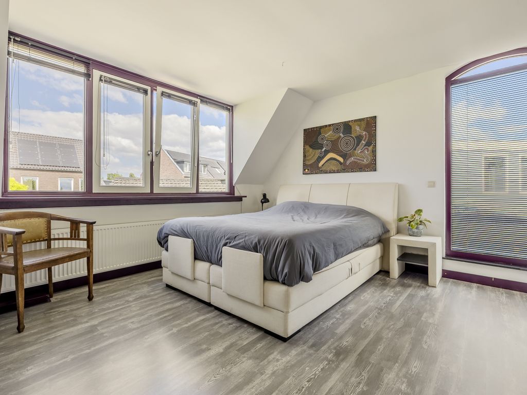 Verder vind je hier een ruime, aparte toiletruimte. Aan het einde van de gang ligt de masterbedroom met dakkapel, inloopkast en een afsluitbare wasruimte.