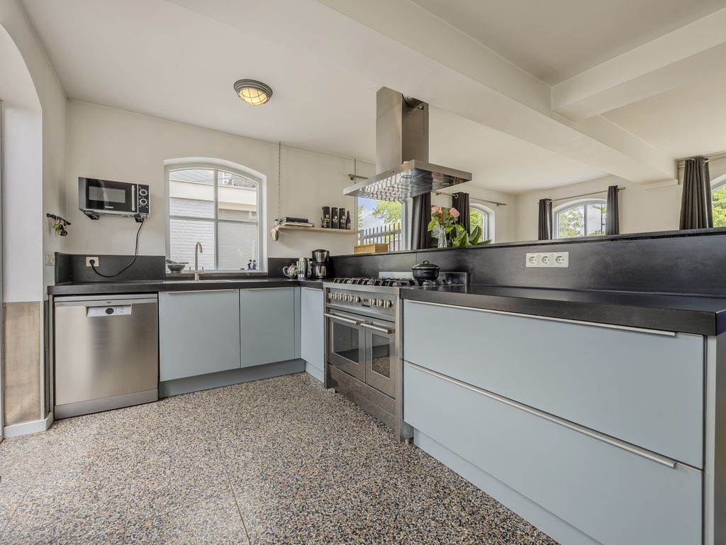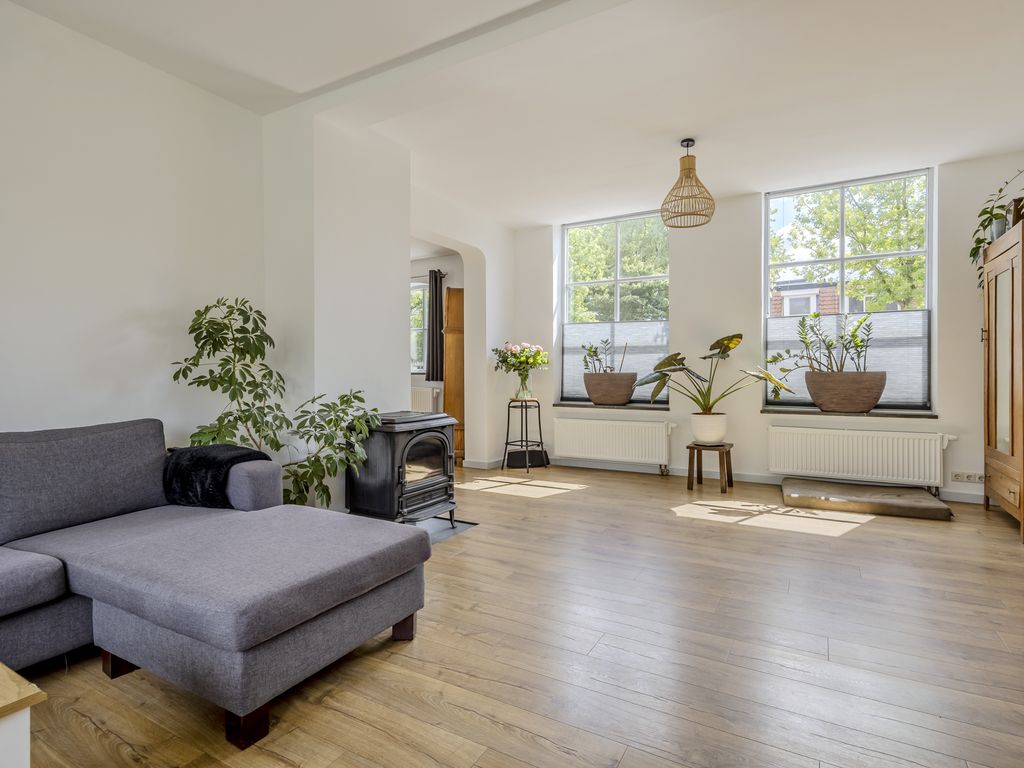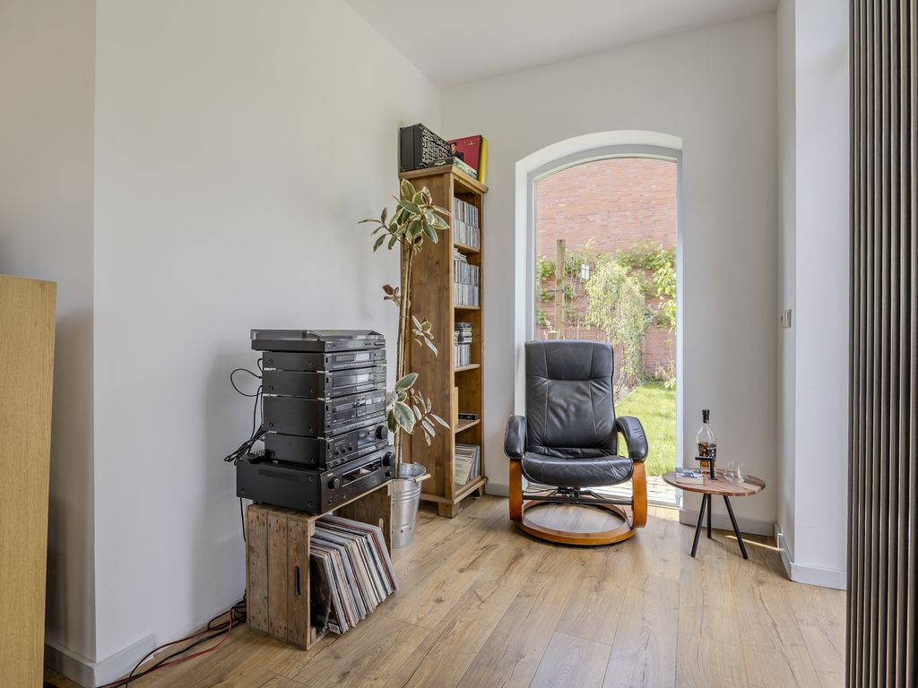 De houtkachel zorgt voor een warme sfeer én behaaglijke warmte in de koudere maanden. Aansluitend vind je een gezellige leeshoek met toegang tot de tuin.