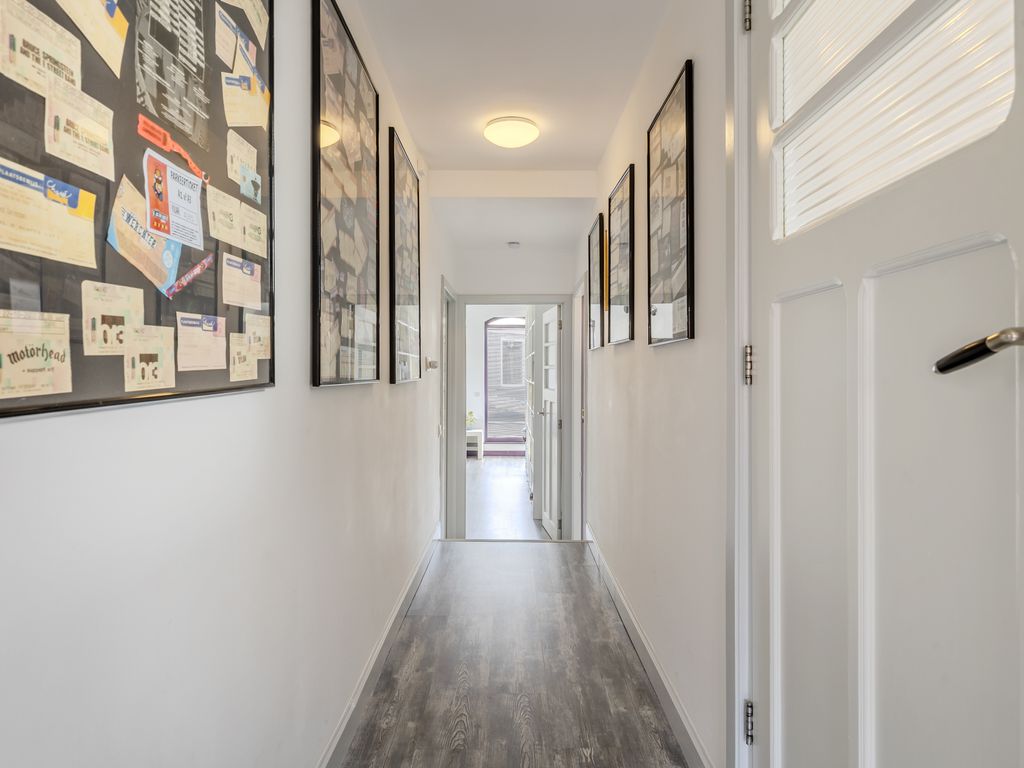 Via de overloop en een lange gang bereik je de verschillende vertrekken.