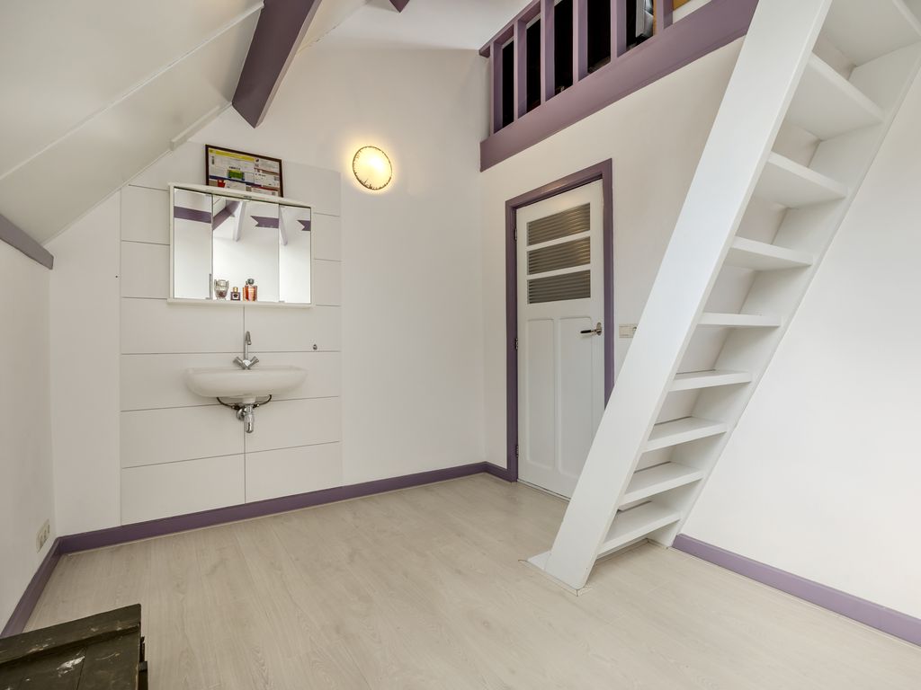 Aan de achterzijde ligt een grote slaapkamer met dakkapel en wastafel, eventueel te splitsen in twee aparte kamers.
