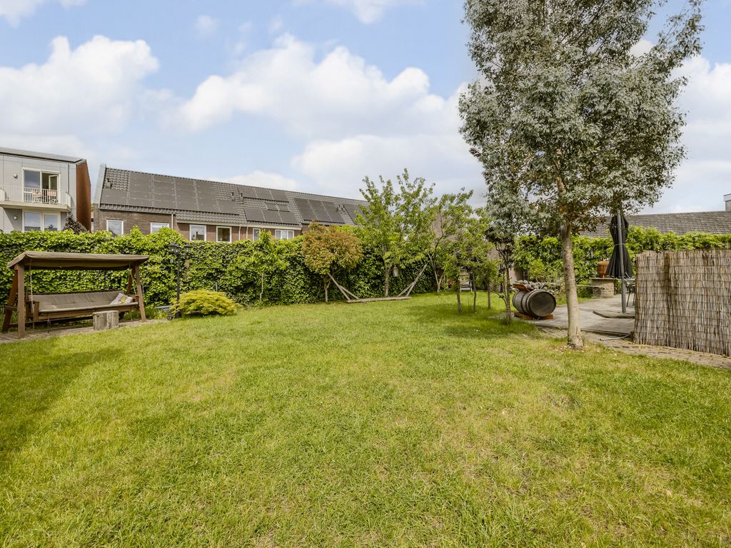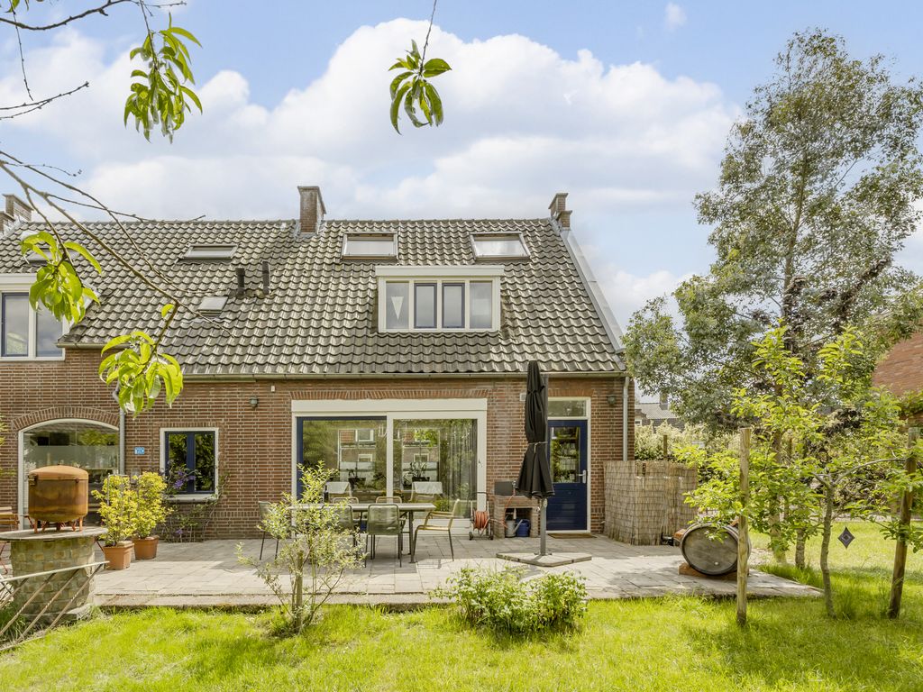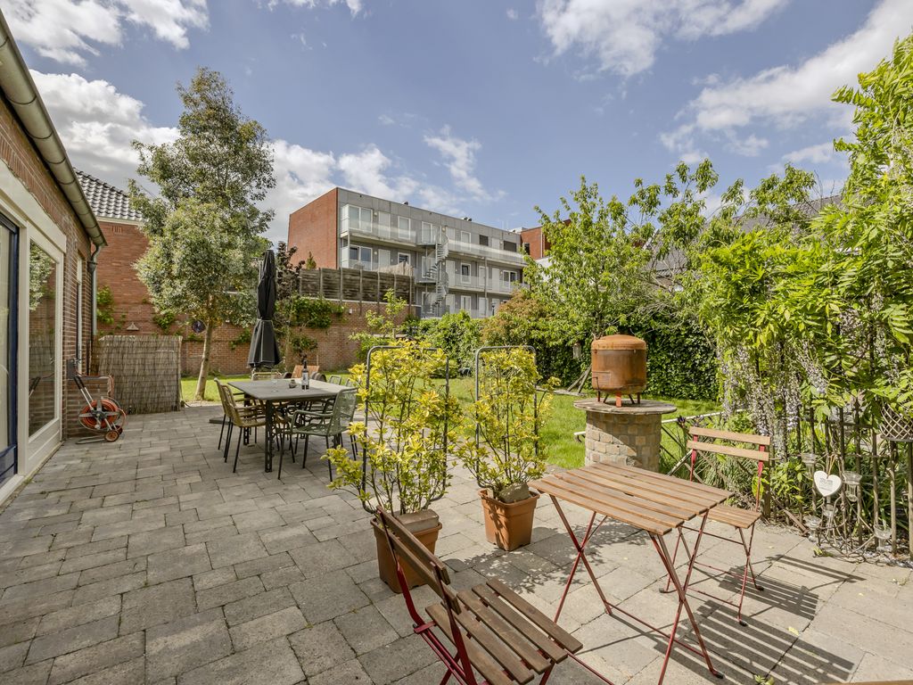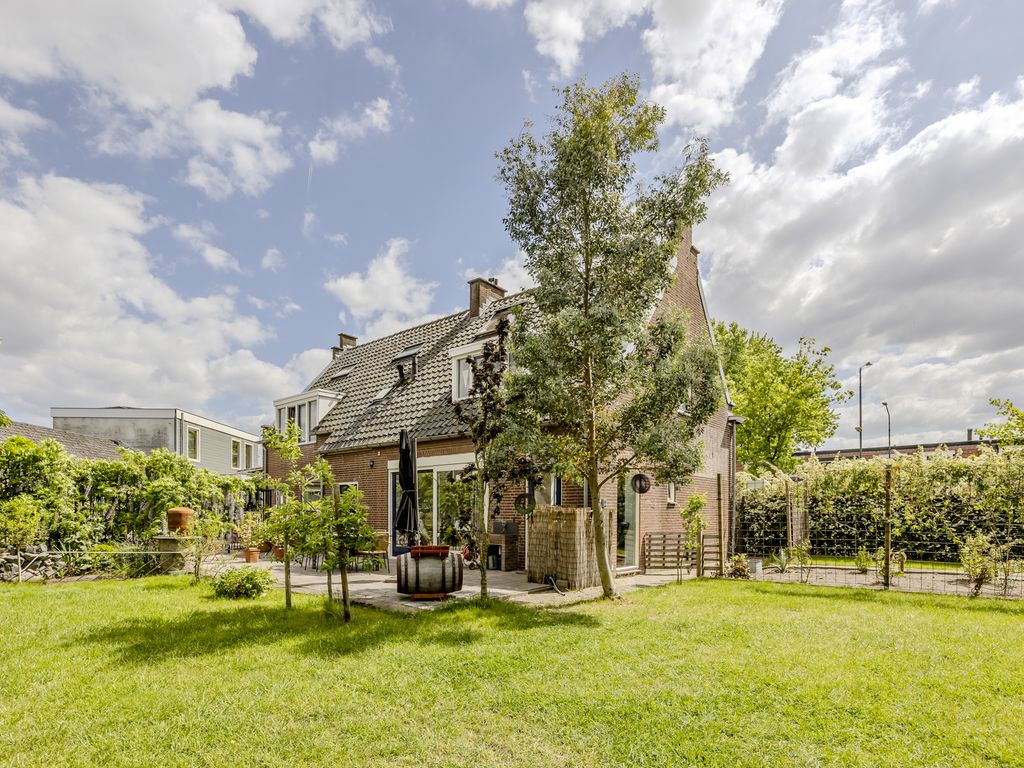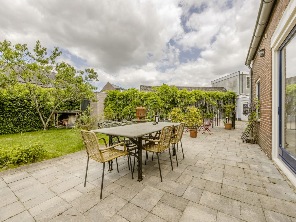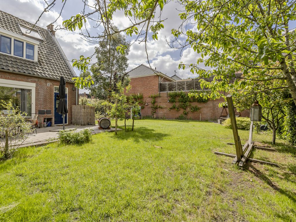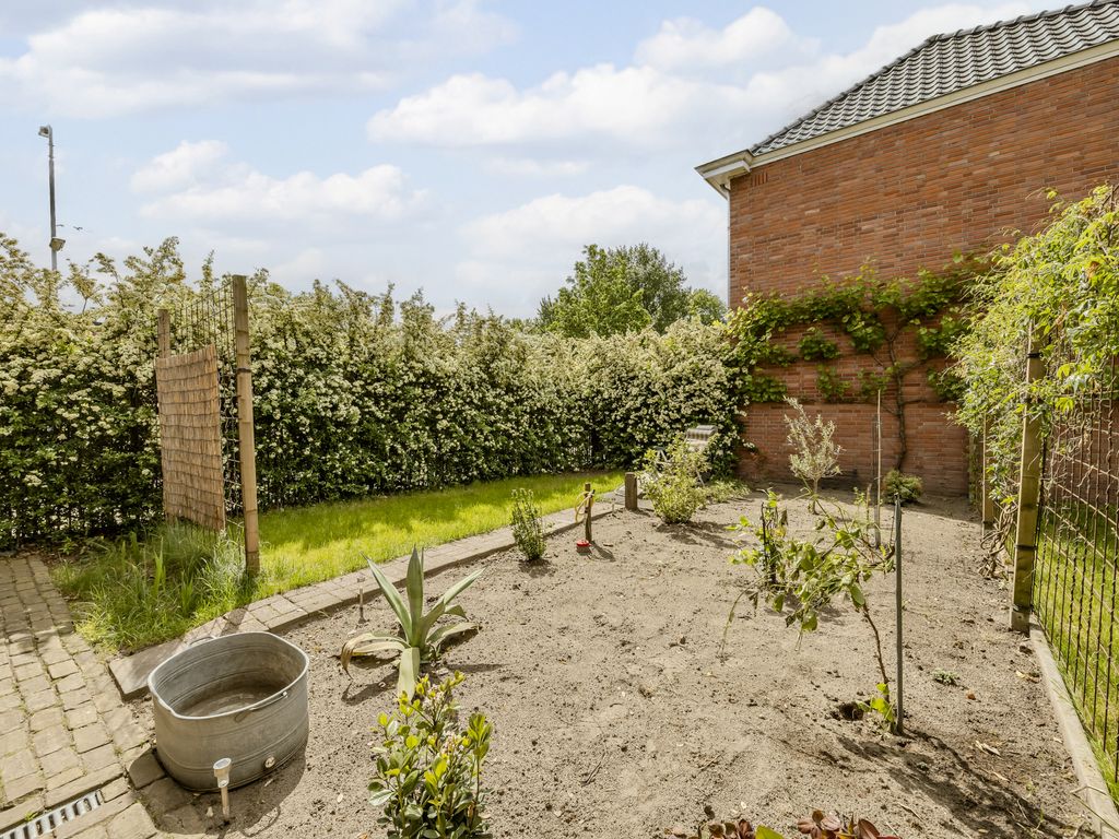 De tuin is gelegen aan de achterzijde en links naast de woning en biedt volop ruimte en mogelijkheden. Dankzij de royale afmetingen is er niet alleen plek voor meerdere zit- en speelzones, maar ook voor een flinke moestuin – iets waar de huidige eigenaren jarenlang met plezier gebruik van hebben gemaakt.